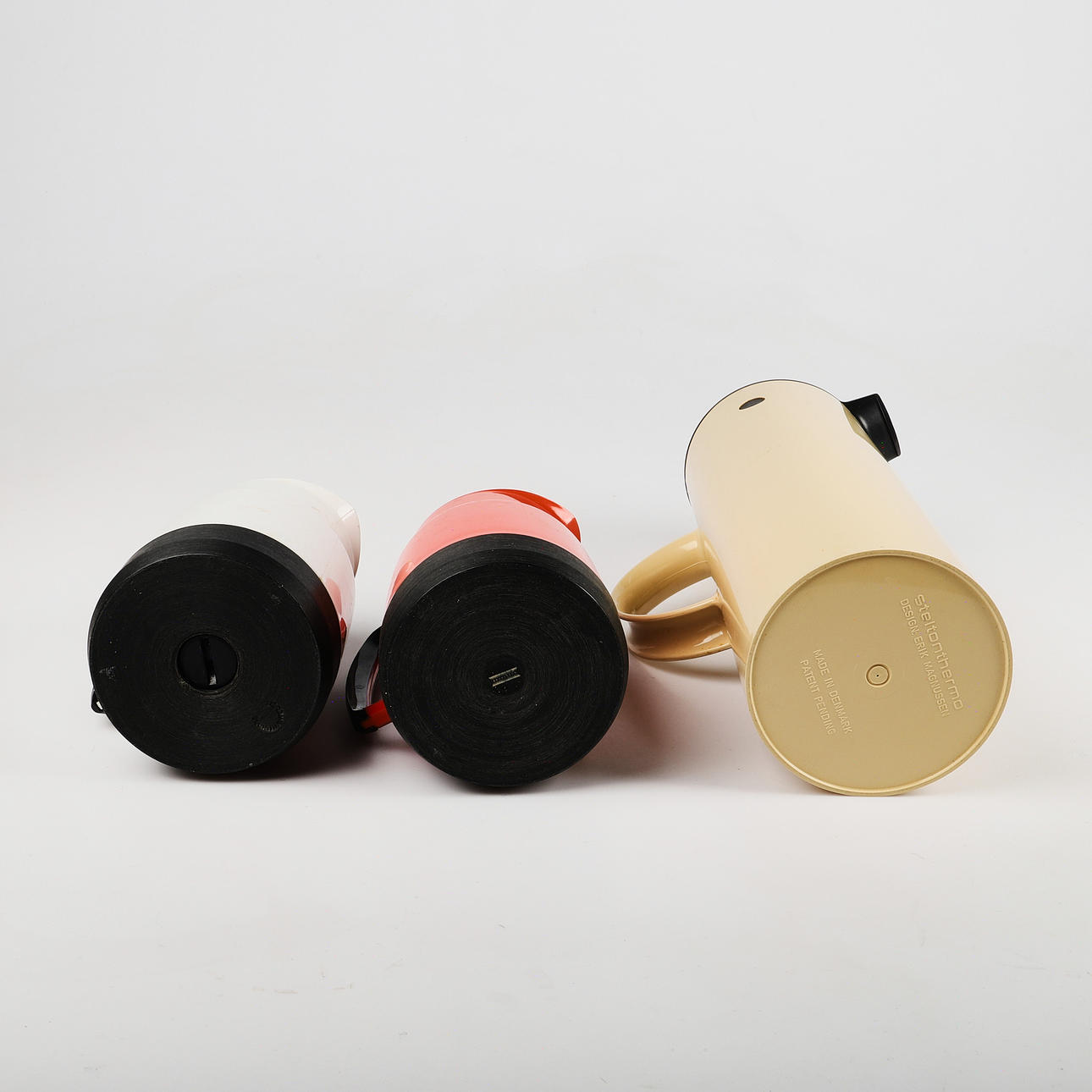 1 kanna, Stelton, 1976, med serveringslock 1 småkannor, Husqvarna Borstfabrik, 1960-tal, höjd 15 cm.