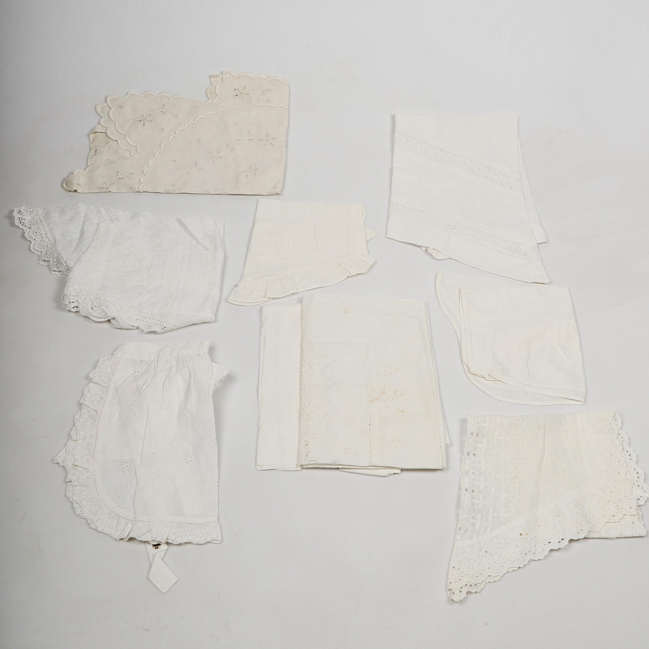 1572225. SERVERINGSFÖRKLÄDEN, 10 delar, bomull, 1900-talets första hälft.