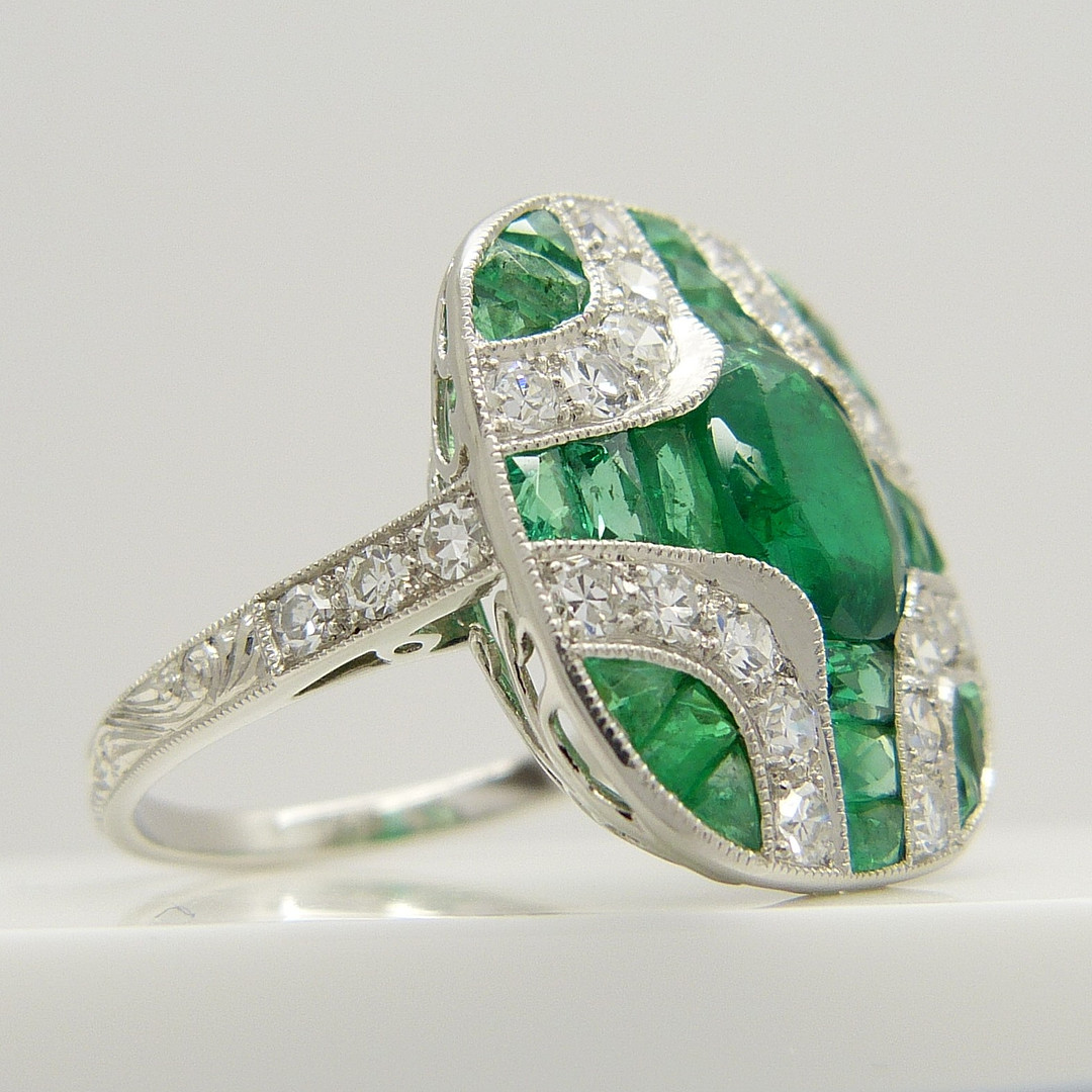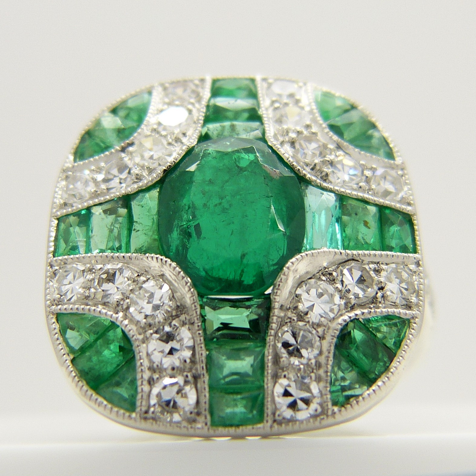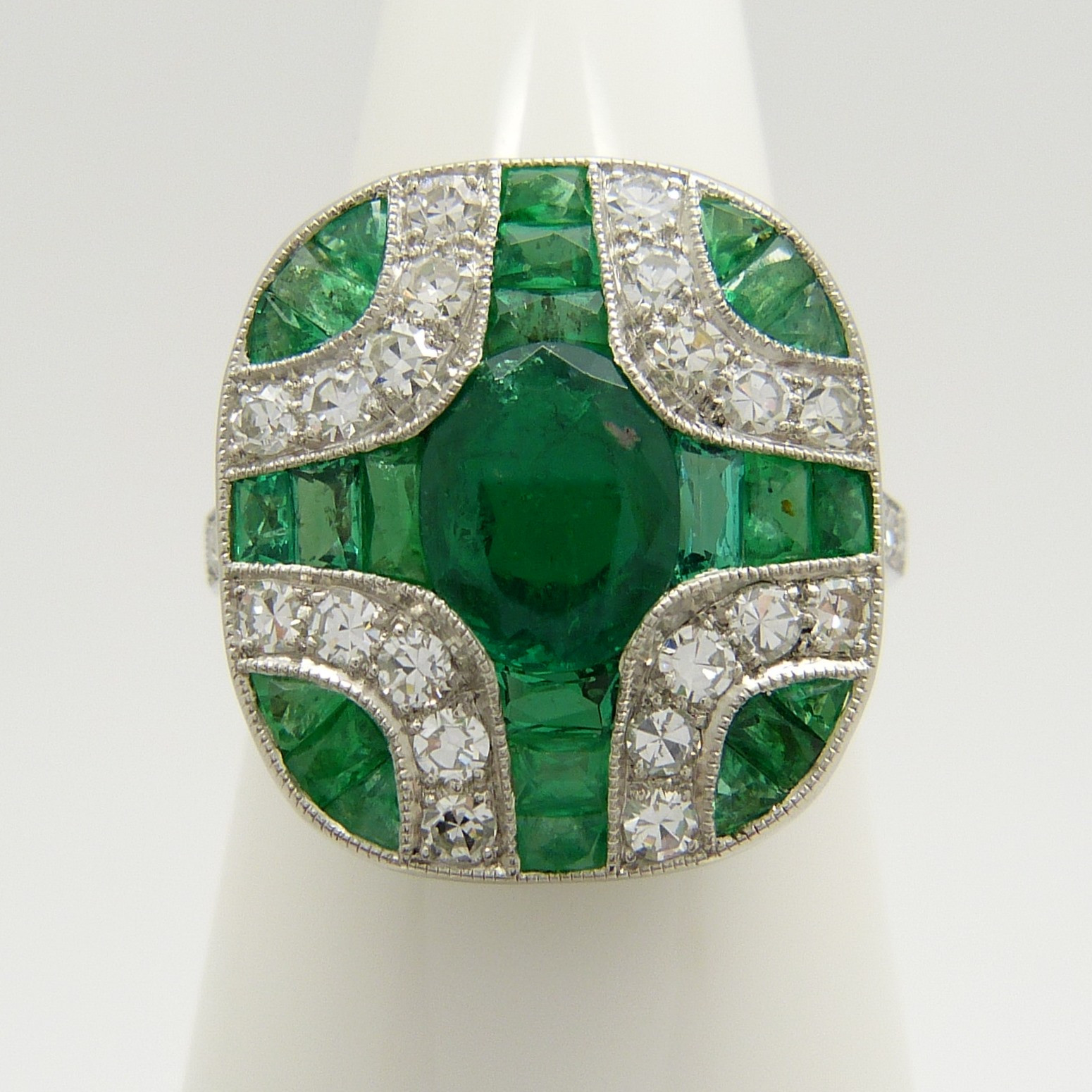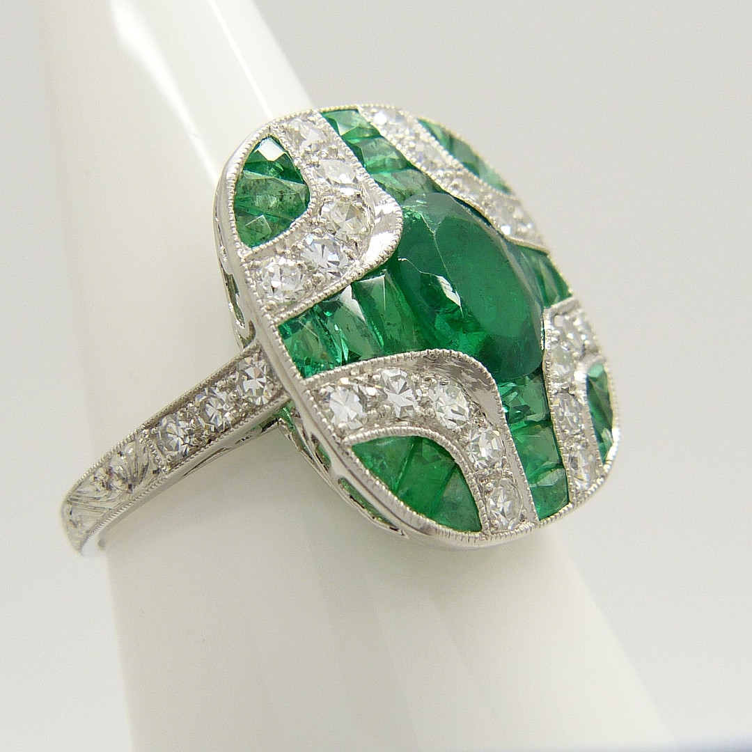 1576310. SMARAGD & DIAMANT PLATINA RING.
