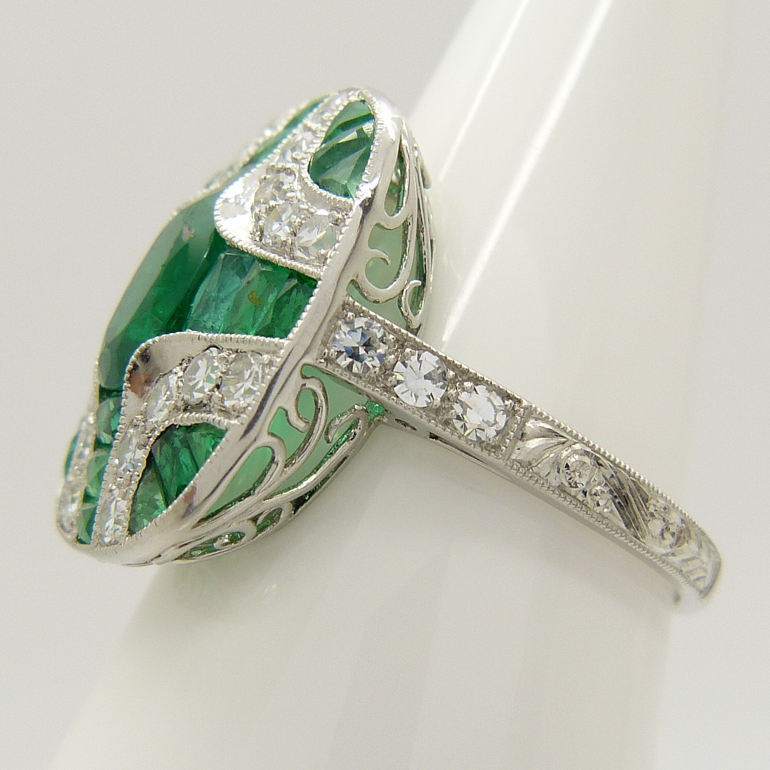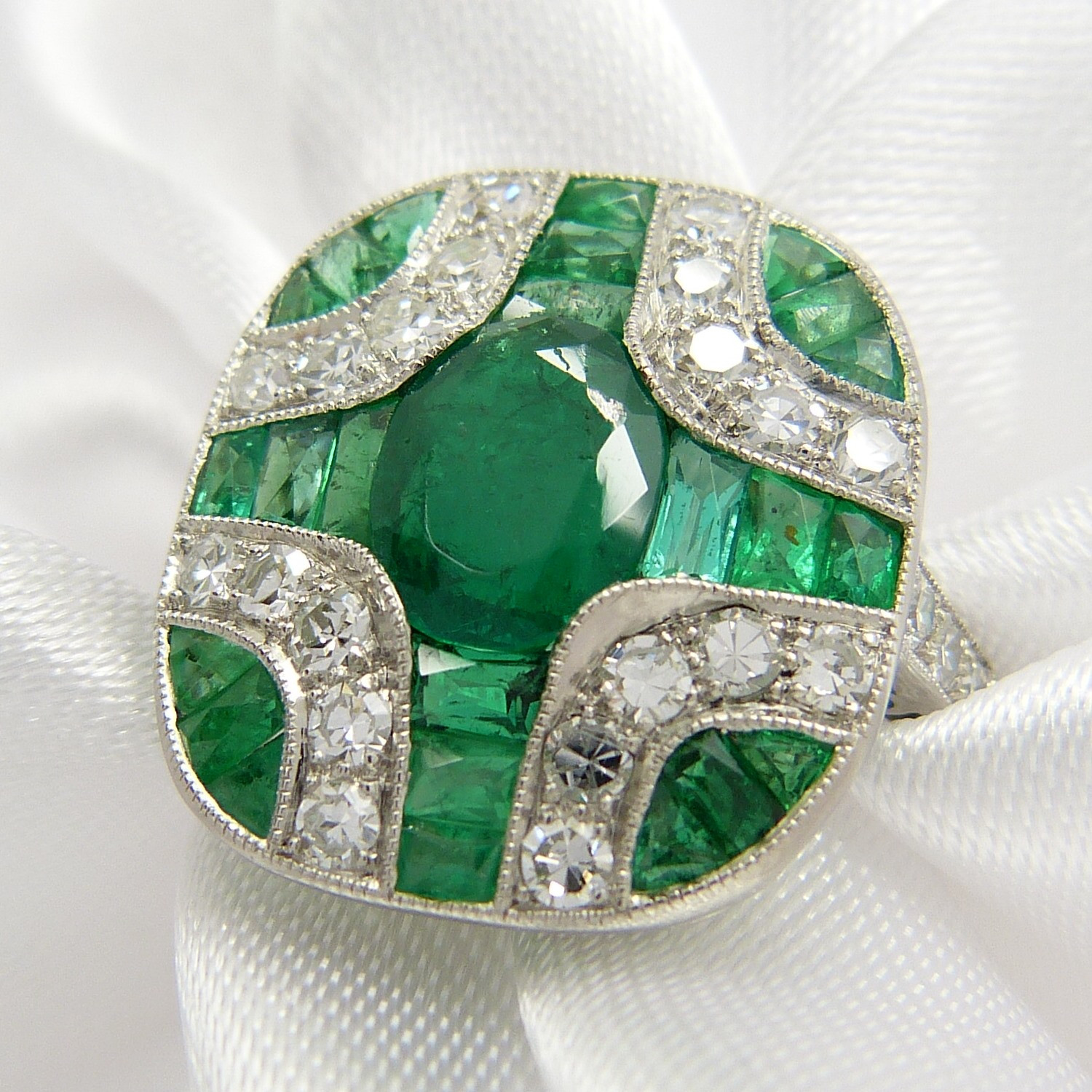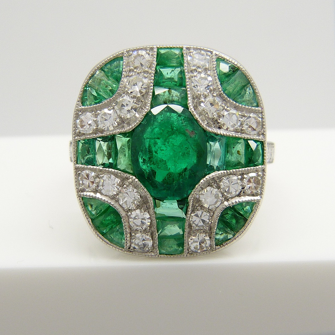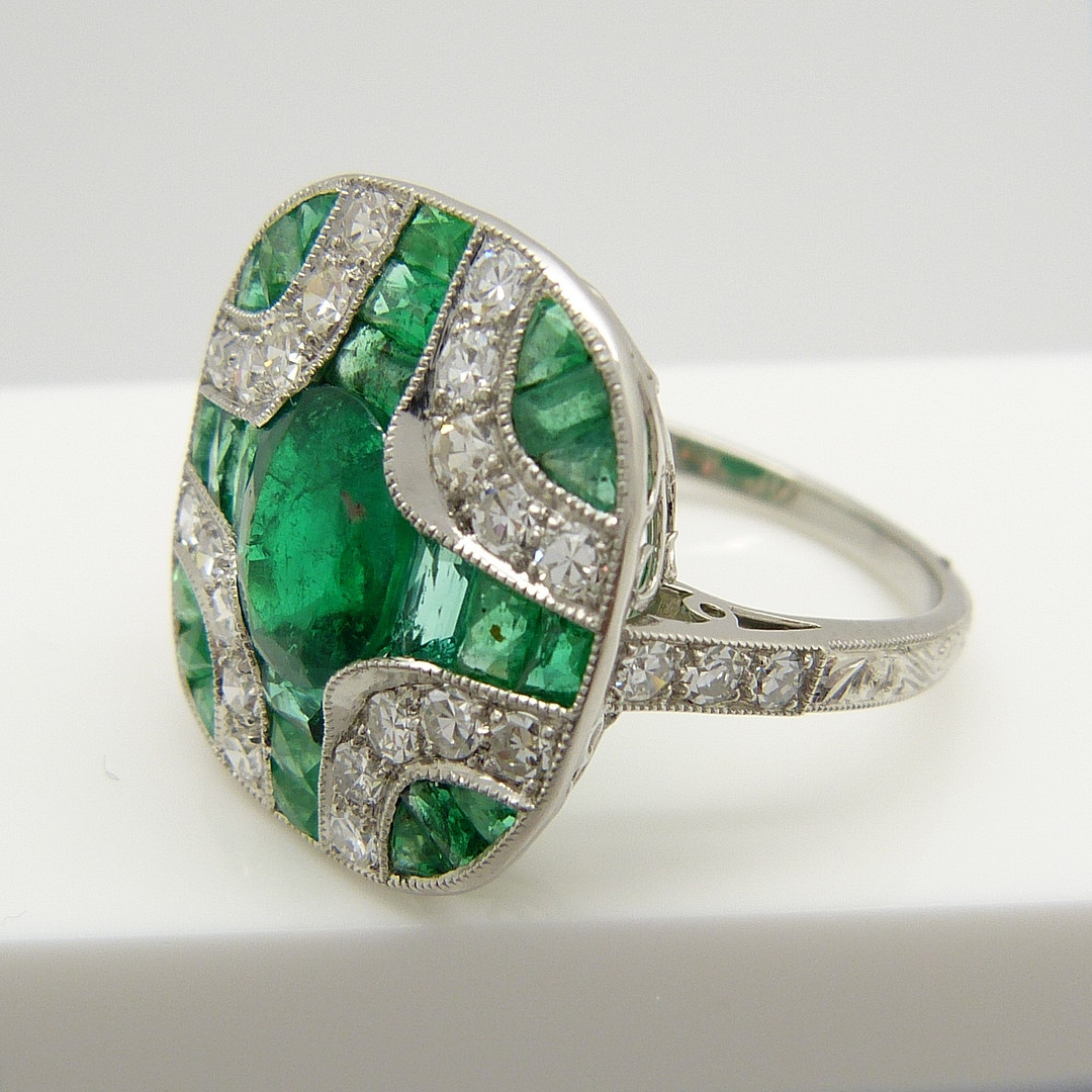 1576310. SMARAGD & DIAMANT PLATINA RING.