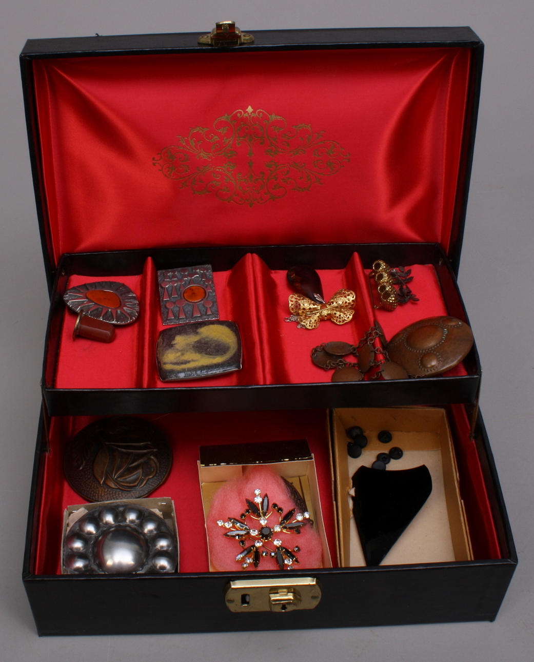 Diverse bijouterier, handspegel, skrin, 2st femkronorssedlar.