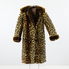 Helfodrad fuskpäls, sidfickor, hakar och hyskor. Bystmått 100 cm Längd från axel 100 cm Ärmlängd från axel ca 60 cm.