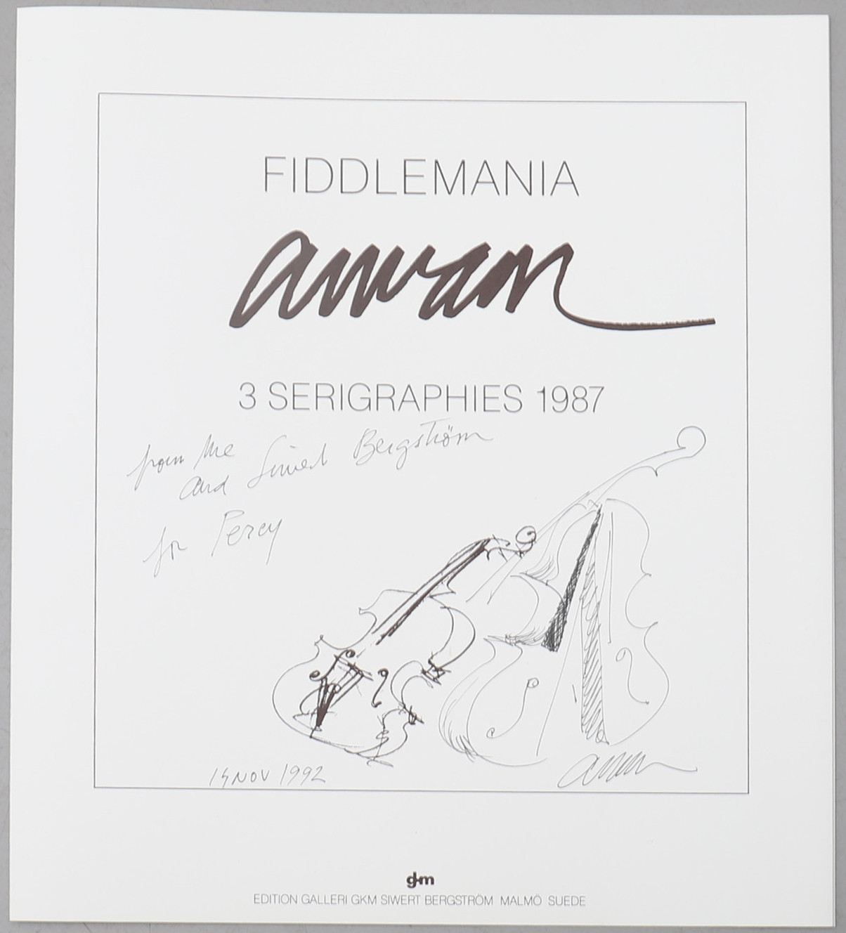 1582596. FERNANDEZ ARMAN. "Fiddlemania" mapp med 3 serigrafier.