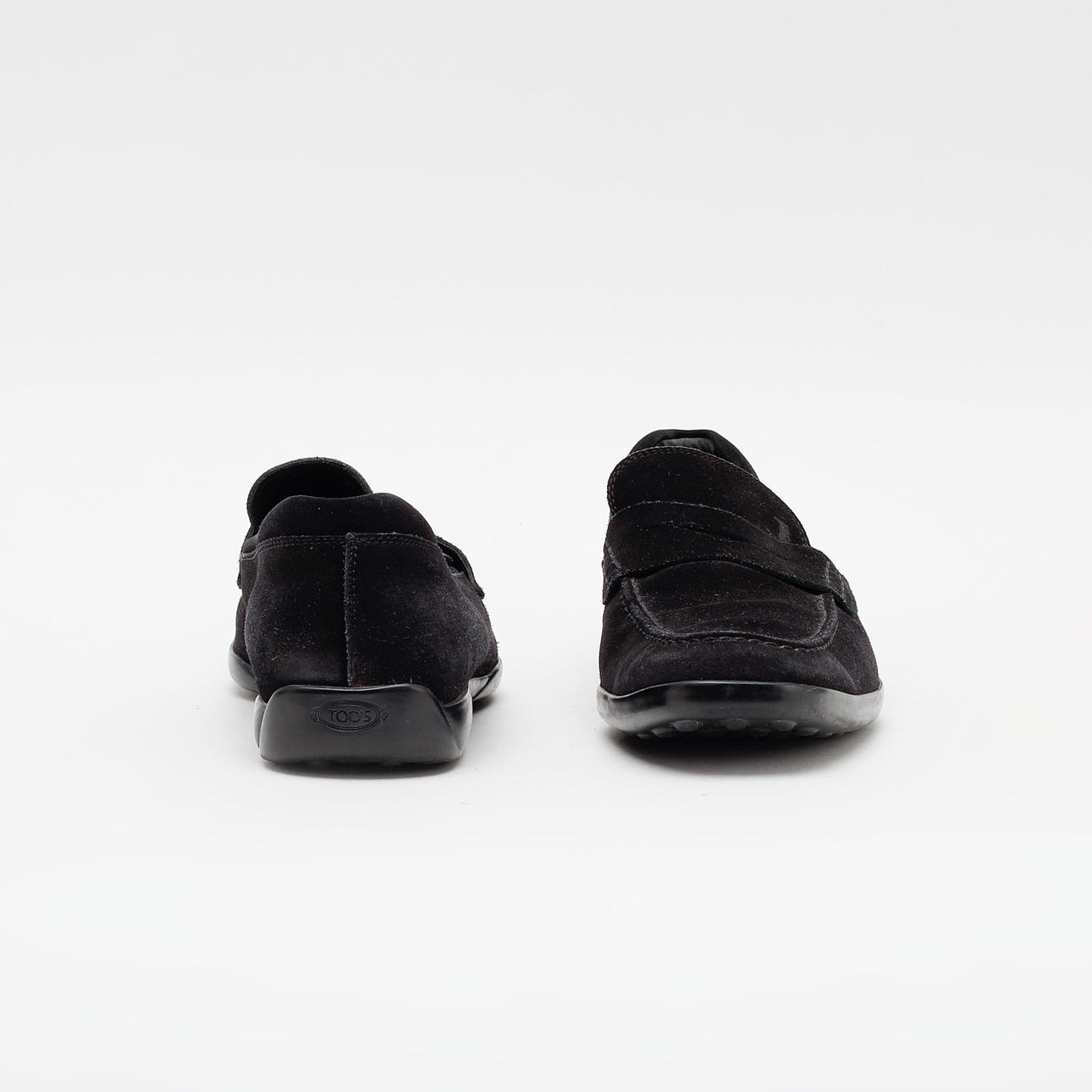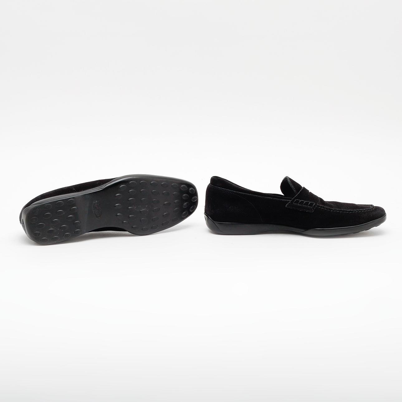 Loafers i svart mocka, stämpelmärkta "TOD'S MADE IN ITALY". Dust bag medföljer.