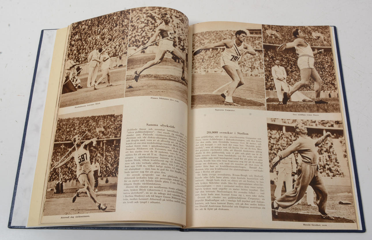 Sommar-olympia 1936 : De elfte olympiska spelen i Berlin. Åhlén & Åkerlunds förlag. Stockholm. 1936. 112 sid. Illustrerad. Förlagets dekorerade klotband.