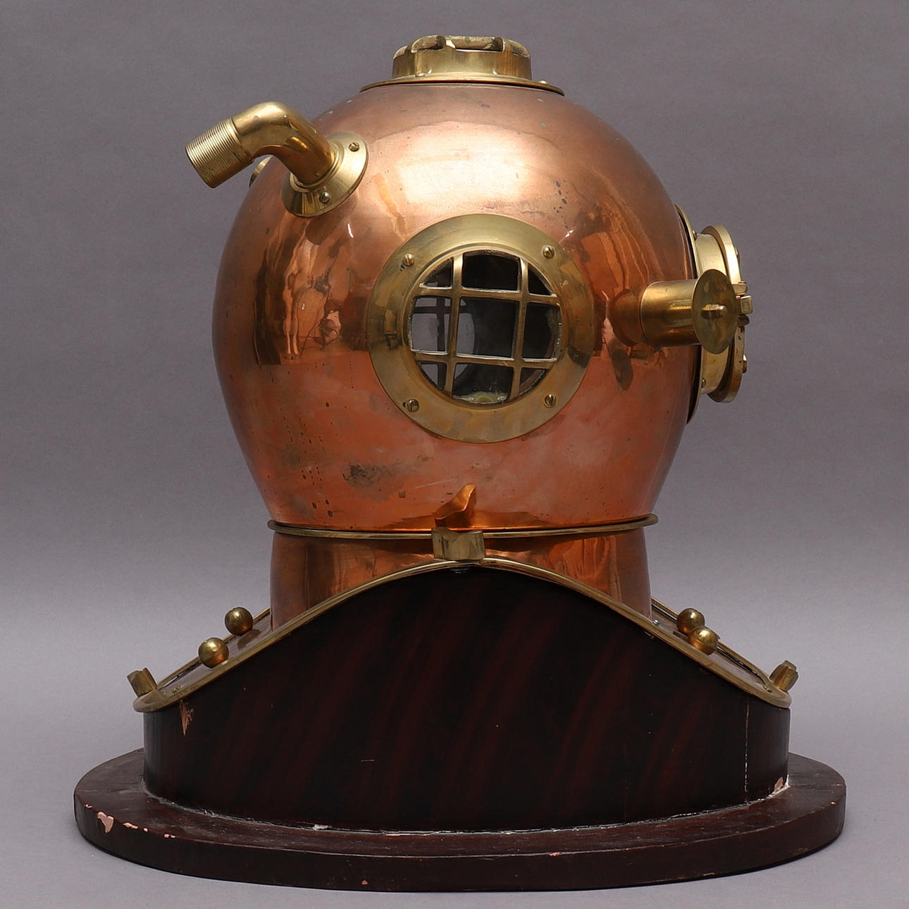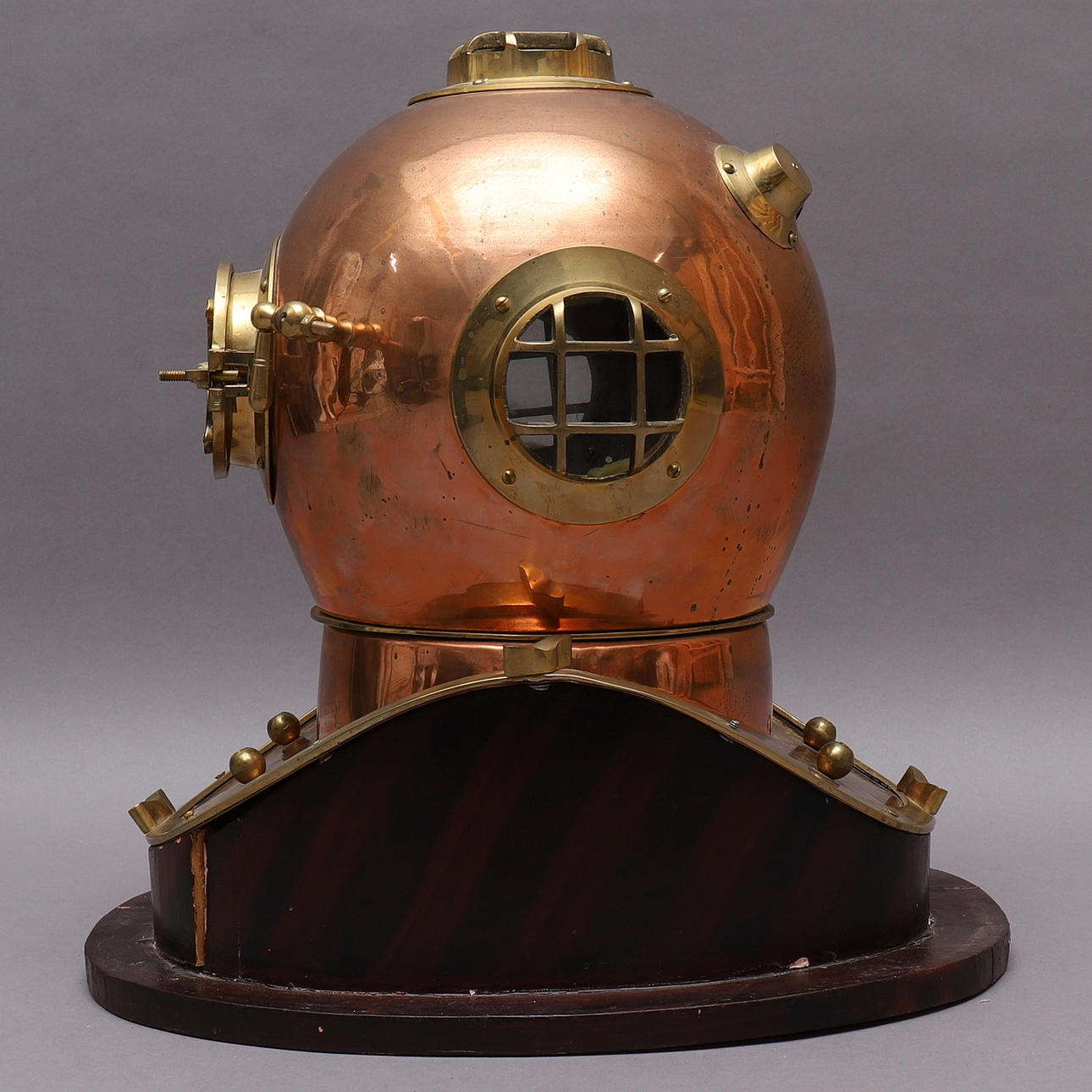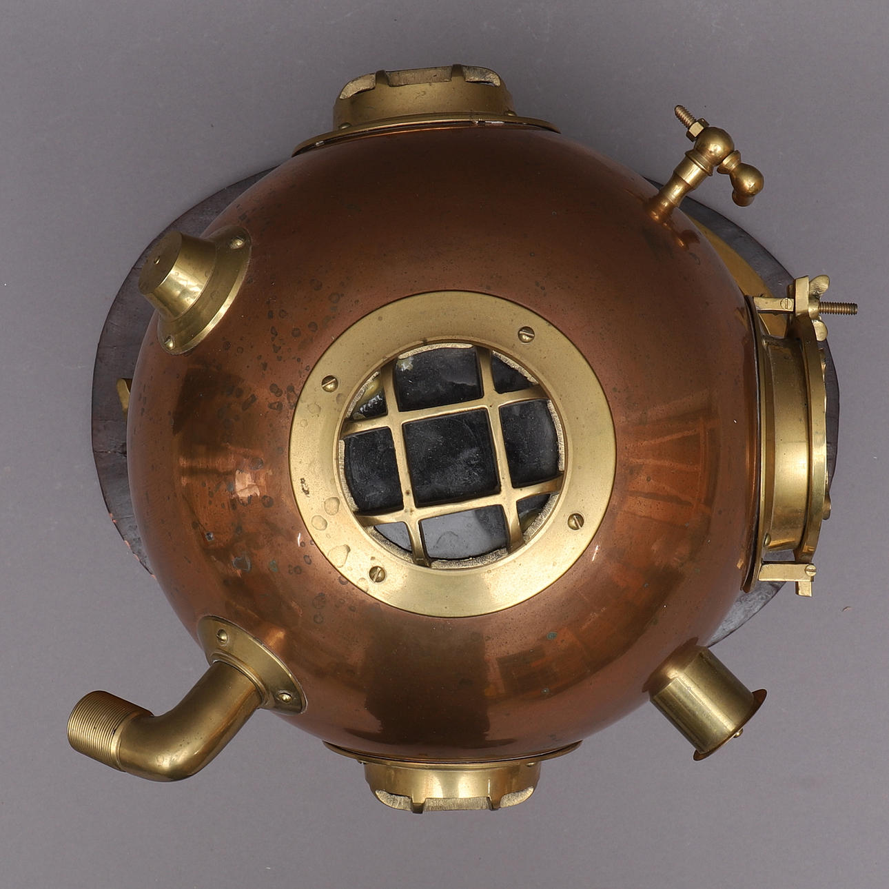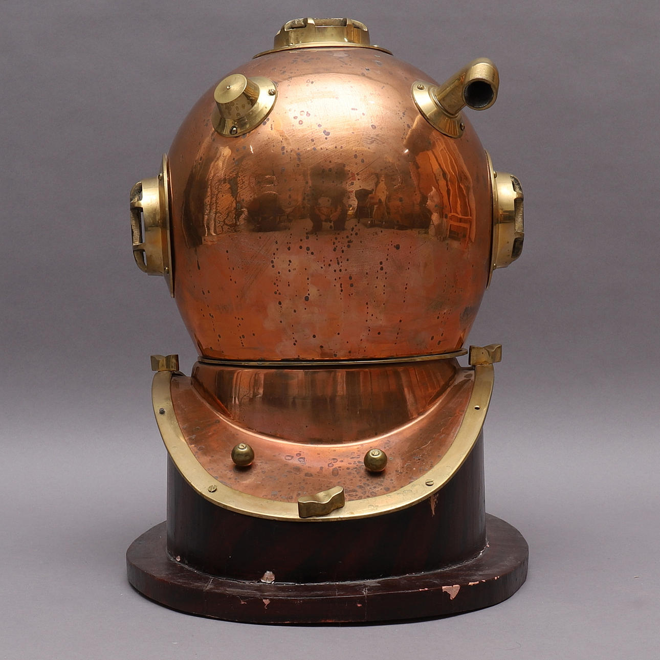 1584800. DYKARHJÄLM, koppar & mässing, replika/prydnad.