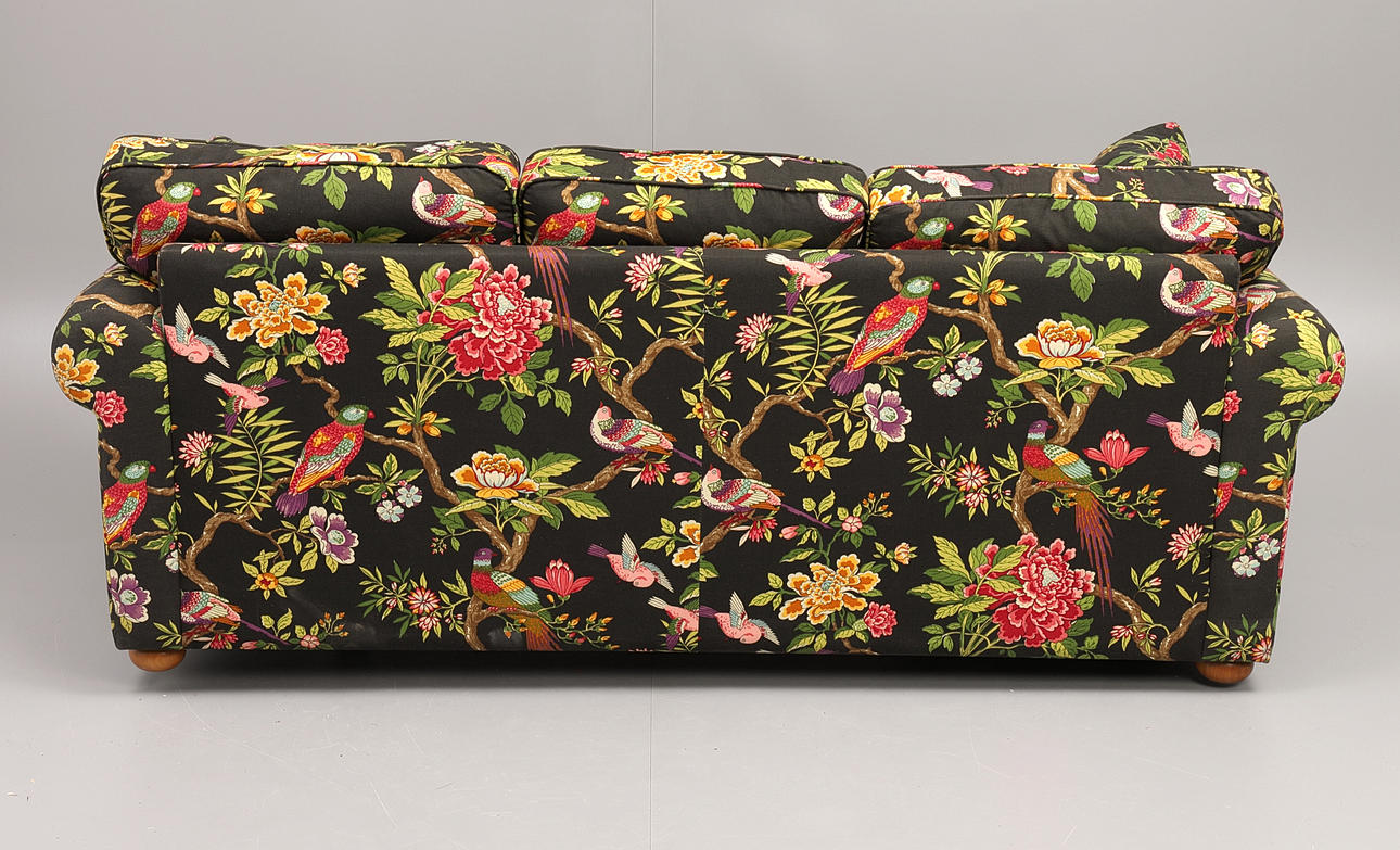 1585297. SOFFA, 3 sits, samtida, mönstrad textilklädsel.