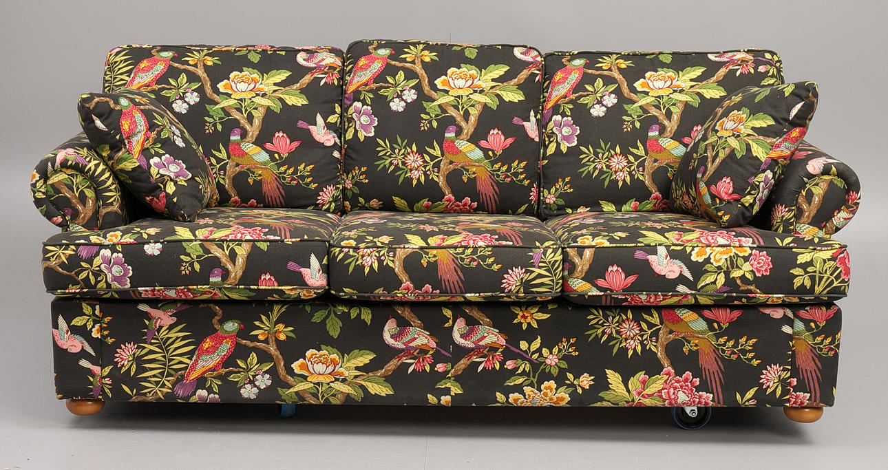 SOFFA, 3 sits, samtida, mönstrad textilklädsel.
