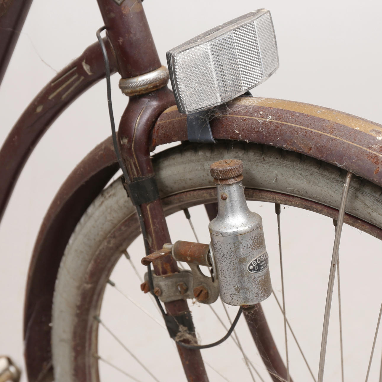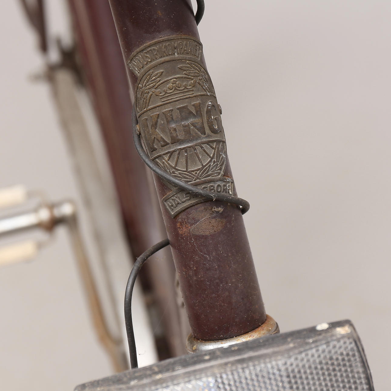 Äldre cykel av märket King med lyse, stöd samt reflexer.