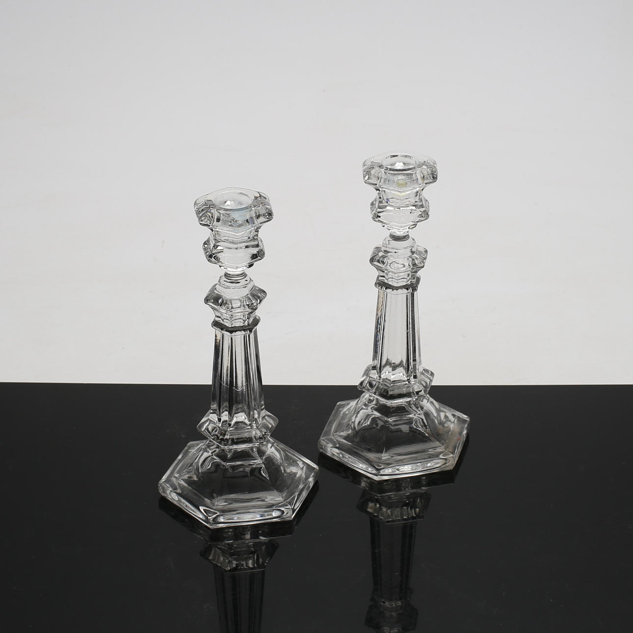 1586496. LJUSSTAKAR, 1 par, pressglas, 1900-tal.