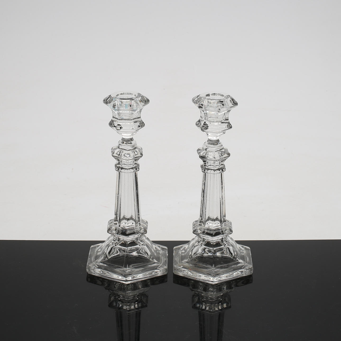 LJUSSTAKAR, 1 par, pressglas, 1900-tal.