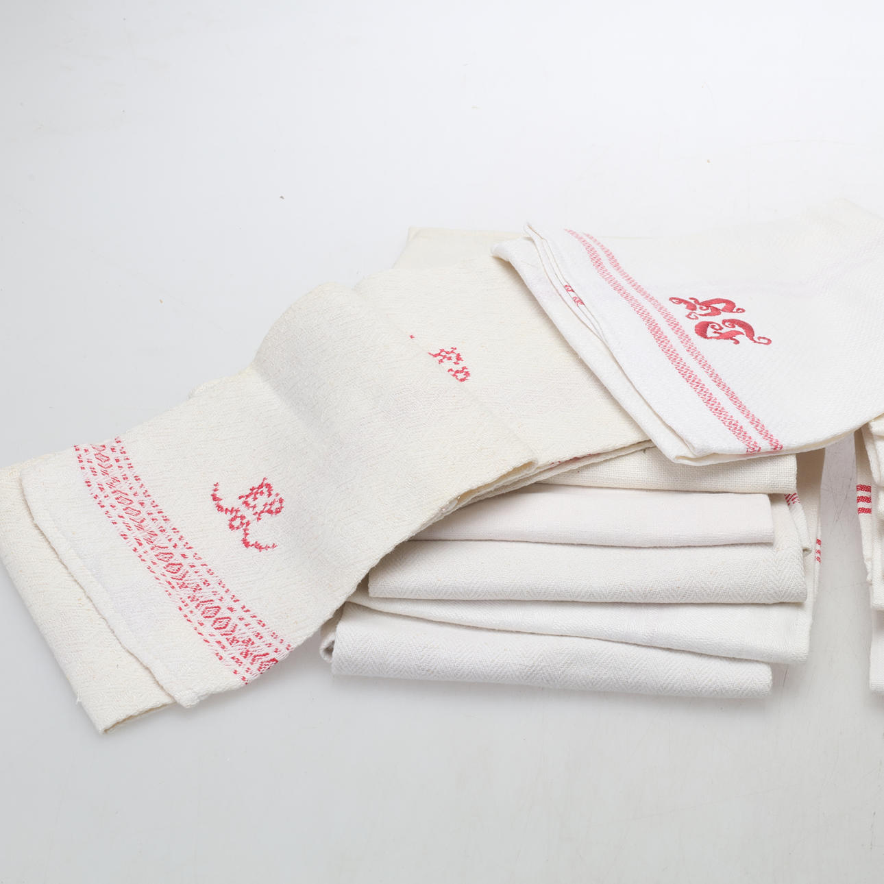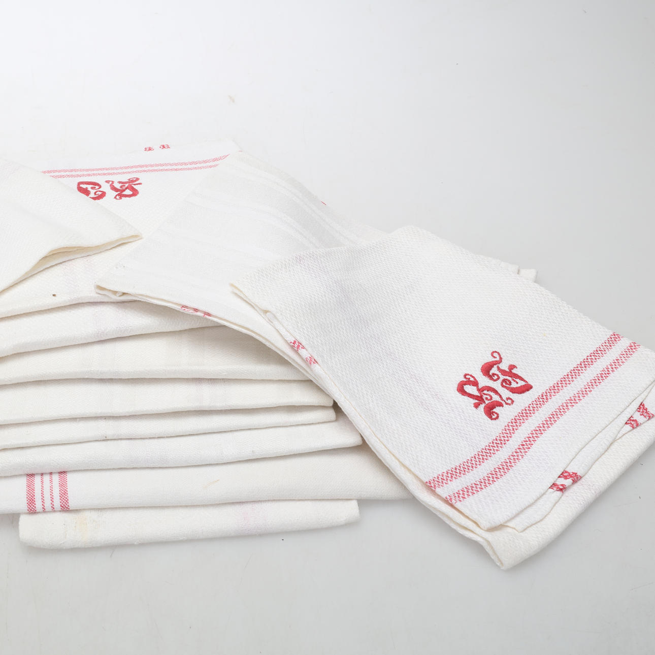 KÖKSHANDDUKAR, 18 stycken, linne, broderade monogram.