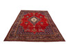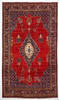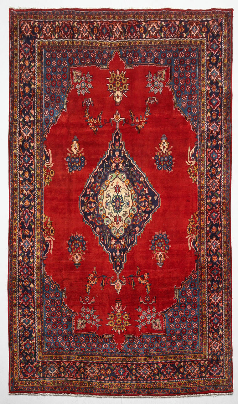 Handknuten persisk matta i ull på bomullsvarp, Viss. Medaljongmönster med blomdekor på enfärgad djupröd botten.