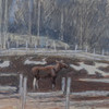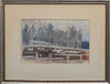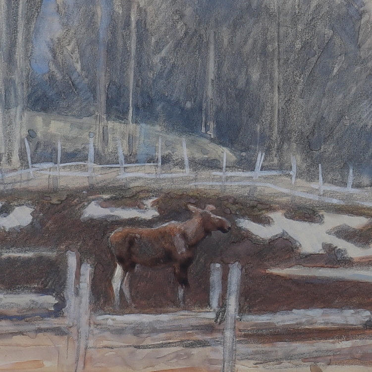 HARALD WIBERG. Älgko i vårvinterlandskap, blandteknik.