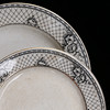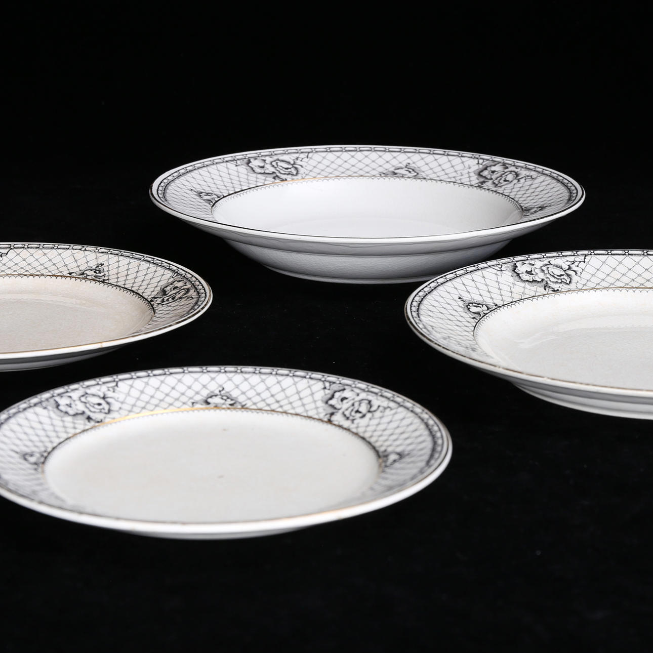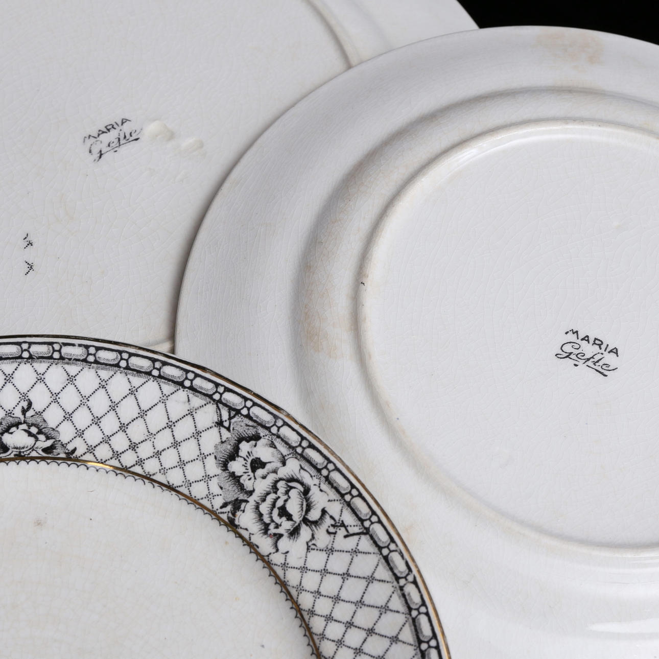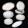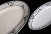 5 tallrikar, diameter 24 cm. 6 djupa tallrikar, 24 m. 6 tallrikar, 20,5 cm. 4 tallrikar, 18,5 cm. 2 serveringsfat, längd 25 - 34,5 cm.