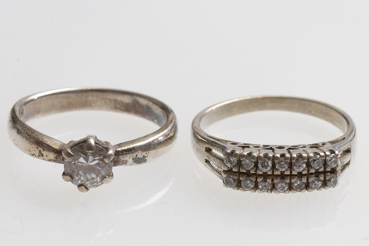 2 st ringar med vita stenar, storlek ca 18.5/59.