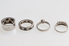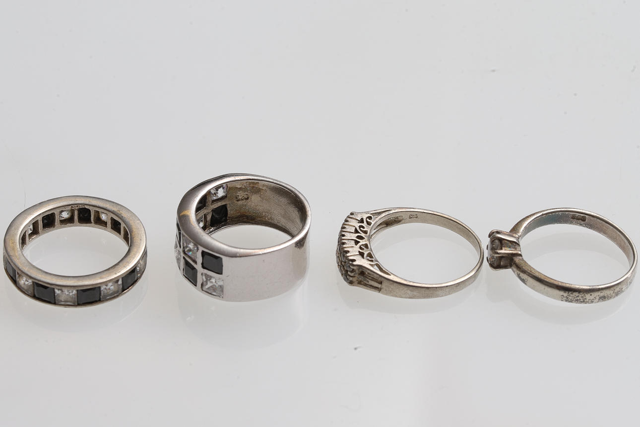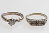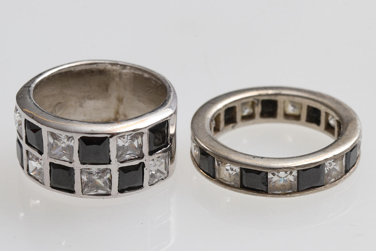 2 st ringar med vita och svarta/mörkt blå stenar, storlek ca 18.25/58, ca 5-10 mm breda.
