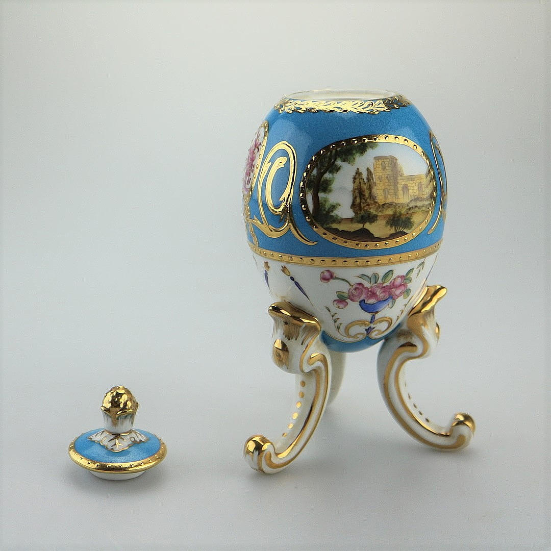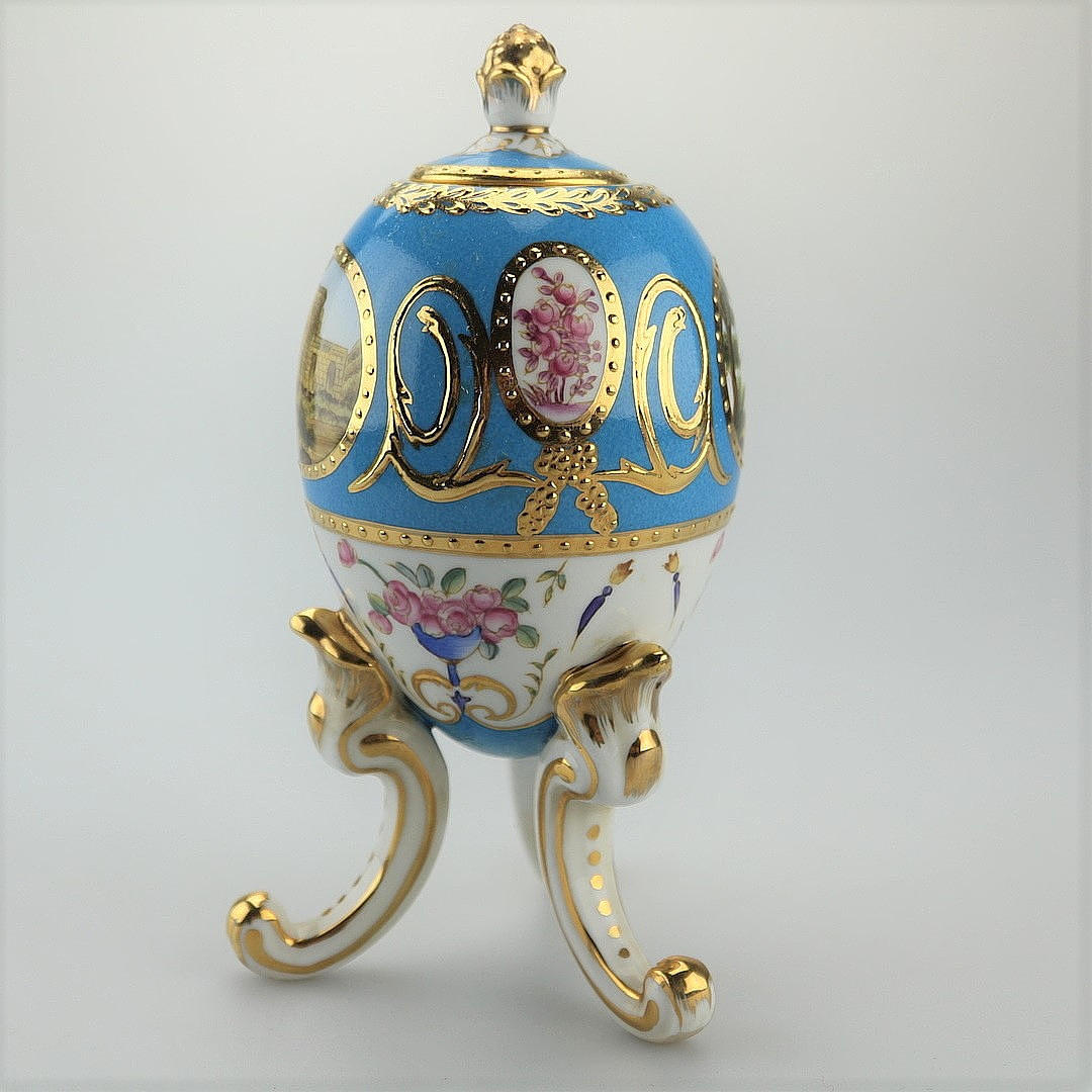Handmålning med gulddekor, 1800-tal, med 3 fot, vedute, höjd: 17,5 cm.