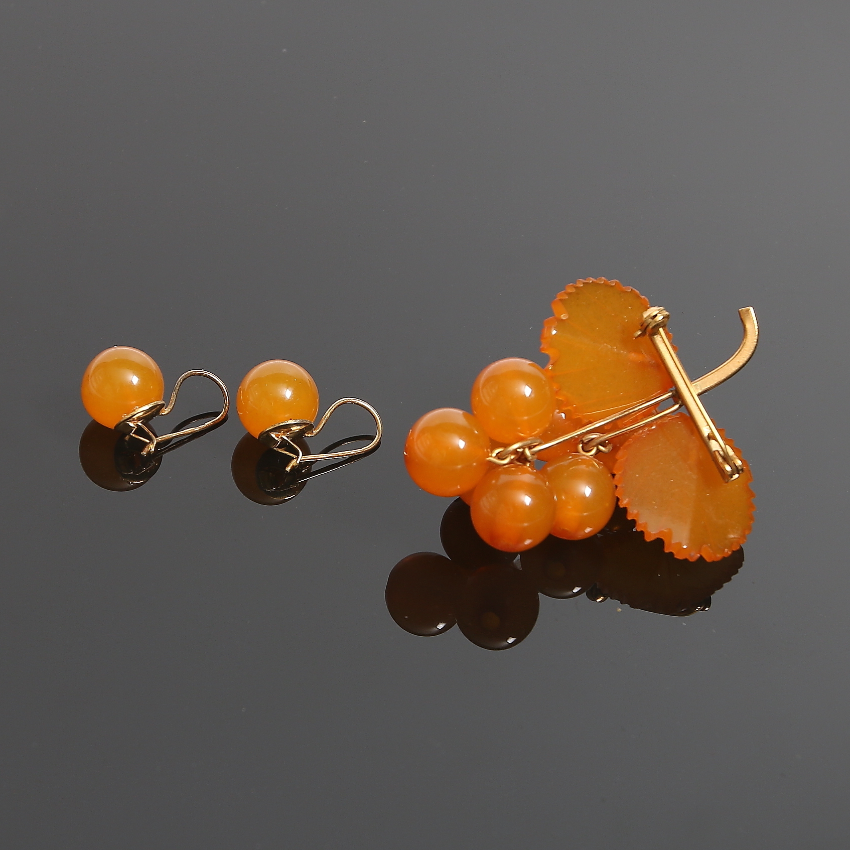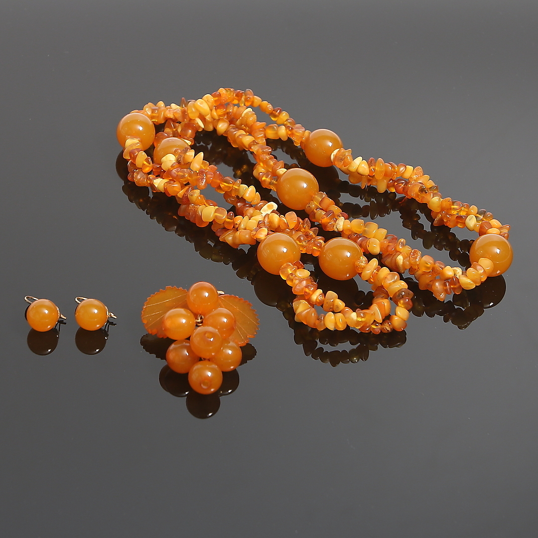 159464. BIJOUTERIER, bärnsten, 4 delar.