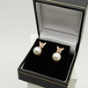 Hängande längst ner på varje öronstift är en rund vit odlad pärla med en diameter på 7 mm, ca.