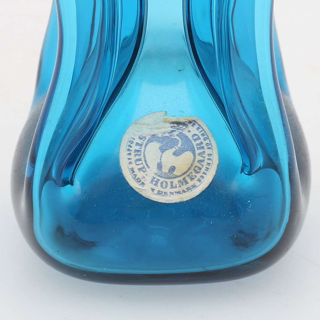 1600769. KLUCKFLASKA, blått glas, Holmegaard, Danmark.