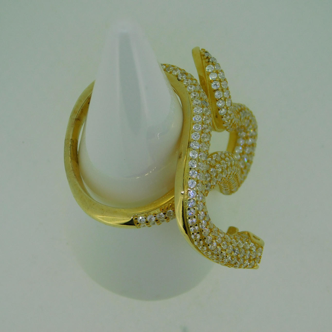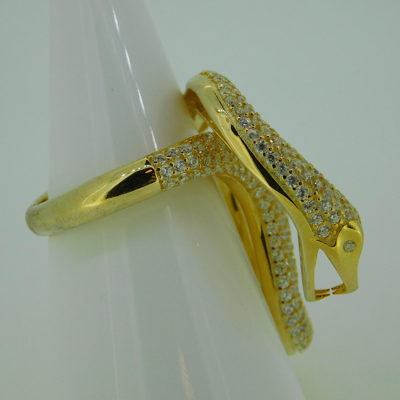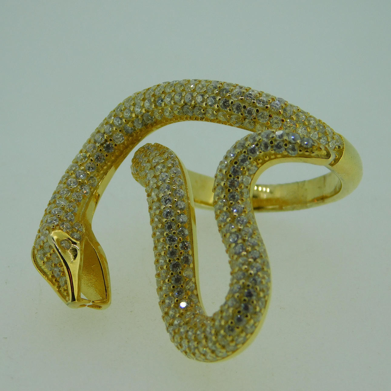 Ringen är stämplad MB 925 (testad som silver) och har guldpläterad och är inställd med cubic zirconia stenar längs majoriteten av kroppen sett ovanifrån för att ytterligare markera denna redo orm.