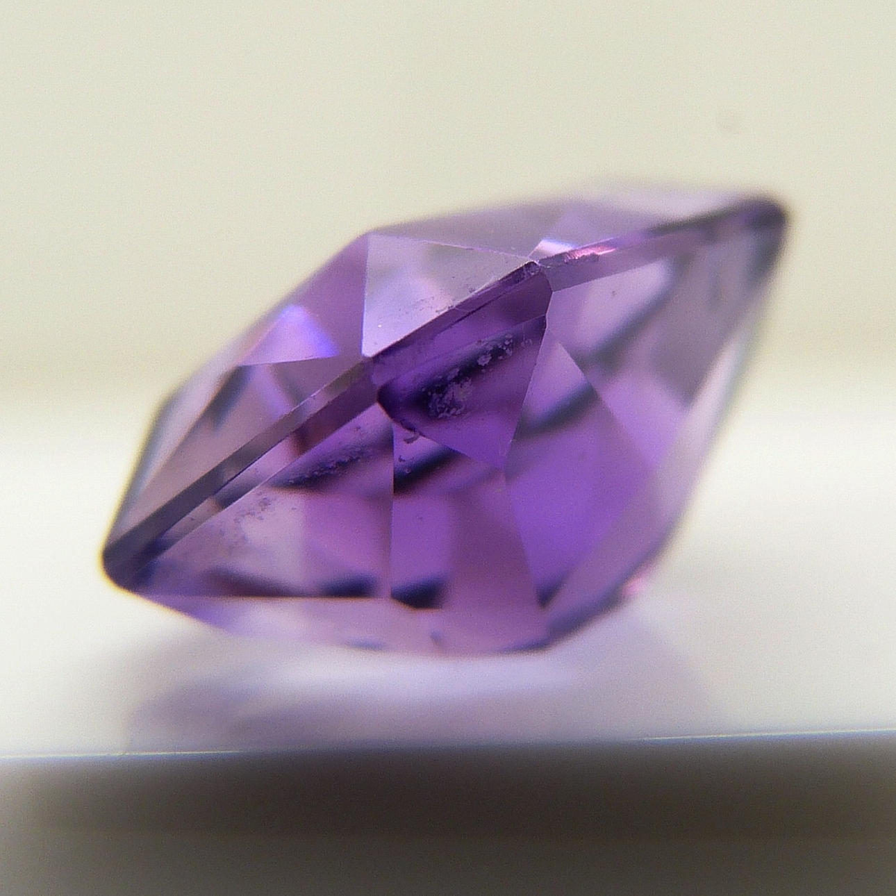 Denna lila ametist ädelsten mäter 11 mm lång x 10 mm bred x 6 mm djup, ungefär.