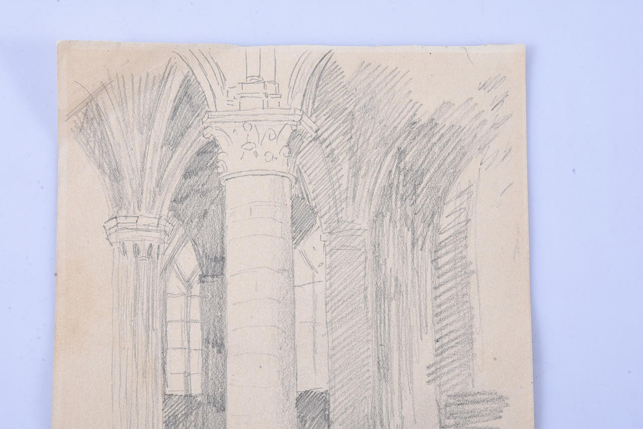 Katedral, Stämpelsignerad. A tergo akvarell samt stämpel Sterbhuset Berta Wilhelmsson. 26x16,5 cm.