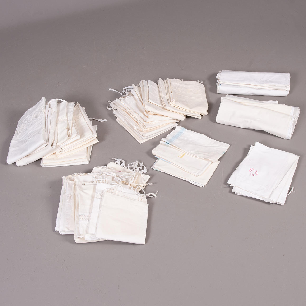 Bomull och några i linne Överlag är de broderade, virkade och monogramsignerade.