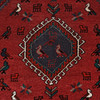 Geometriska mönster samt djurfigurer på mörkblå botten.