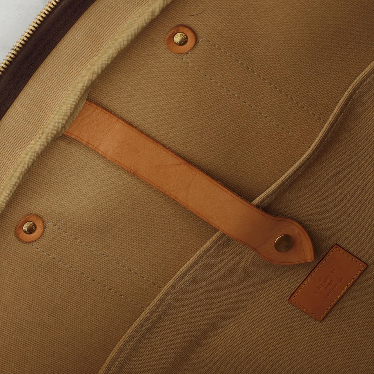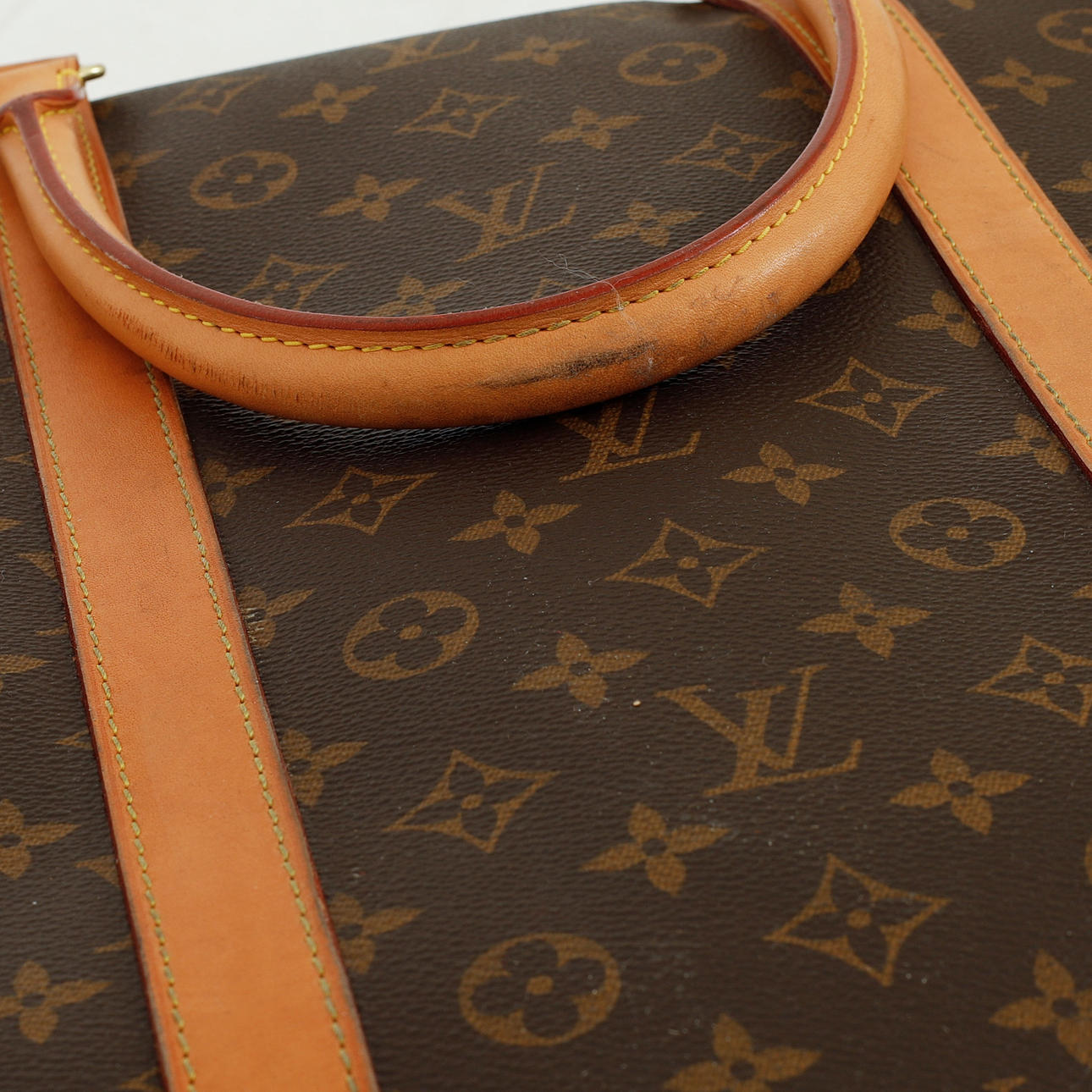 Monogram canvas med bruna skinndetaljer. Fodrad med beige canvas samt med inredning i form av ett fack samt två remmar i resår i kryss. Stämpelmärkt "LOUIS VUITTON PARIS made in France" Kod France 2016. 69 x 48 x 22 cm