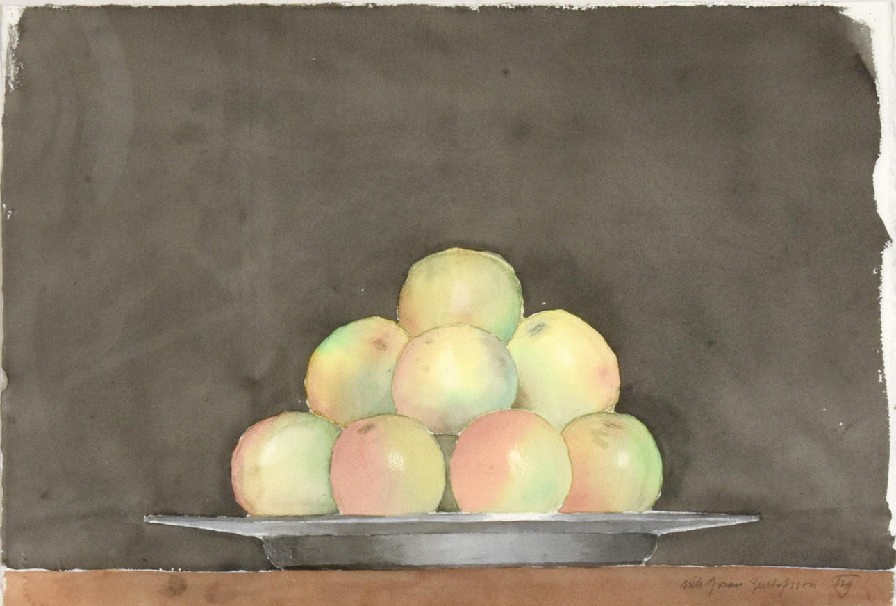 "Äpplen på tennfat" Signerad. 39x56 cm.