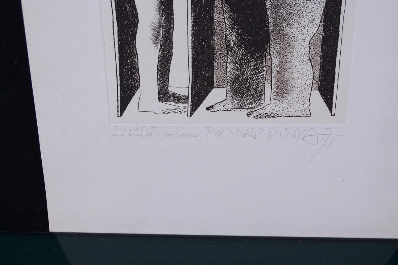 Surrealistisk figurkompositon. Signerad. 23x16 cm. Daterad -71.