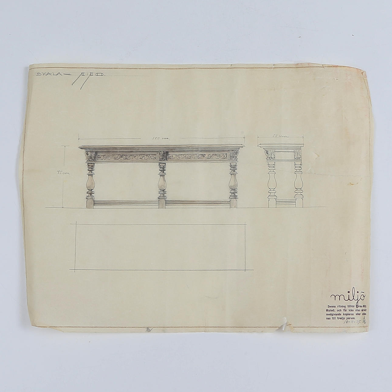 1624972. SIDEBOARD, ek, med ritning, 1900-tal.
