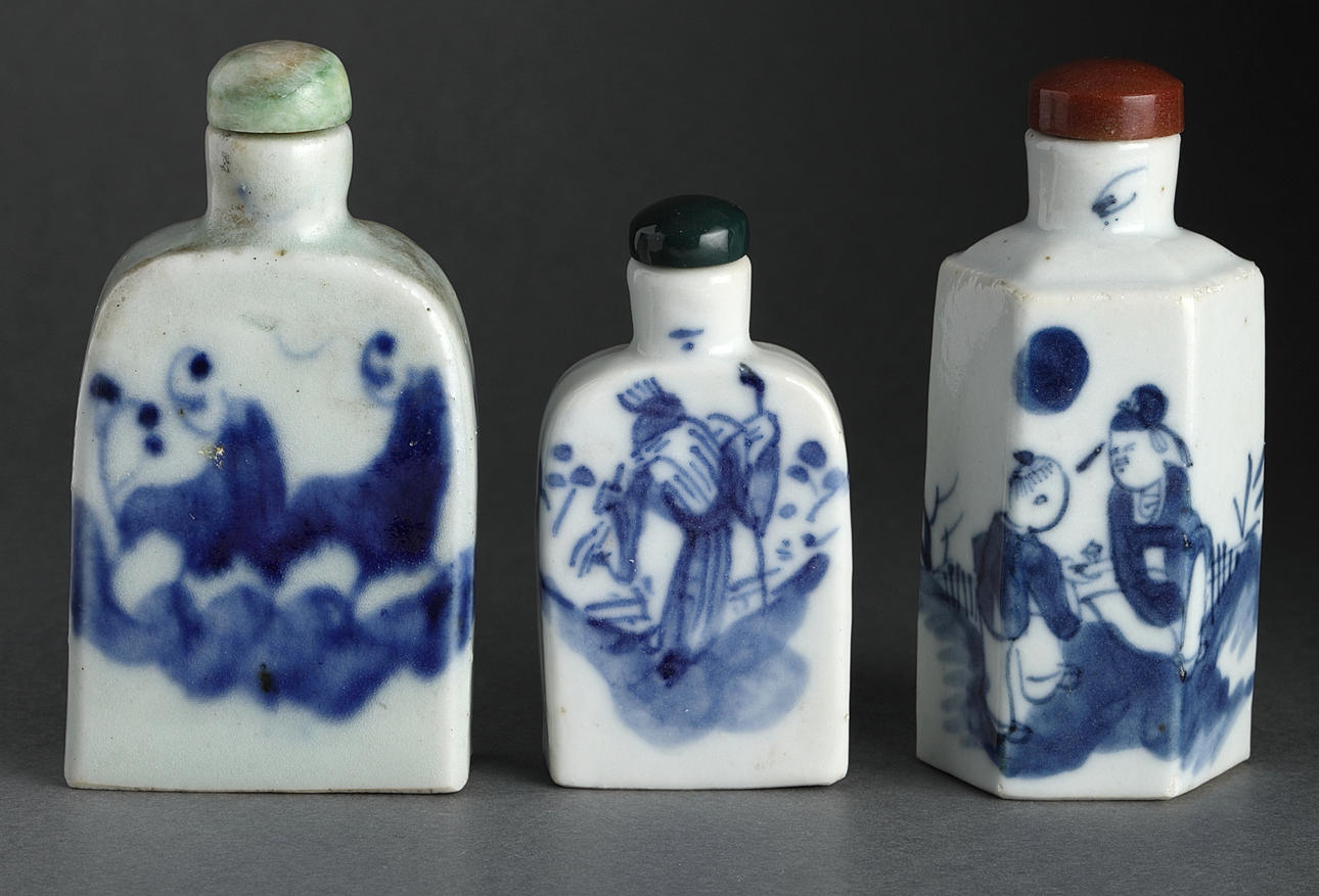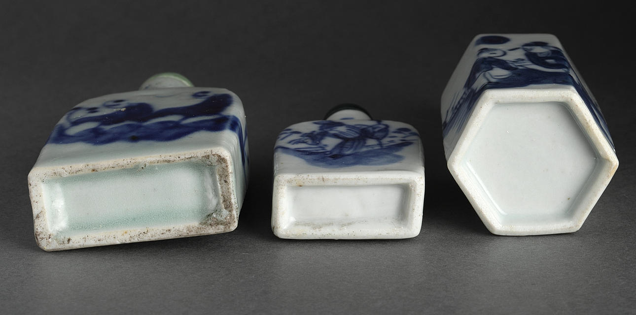 Snuff bottles, 5 pcs., porcelain, China, Qing, 19/20th century.