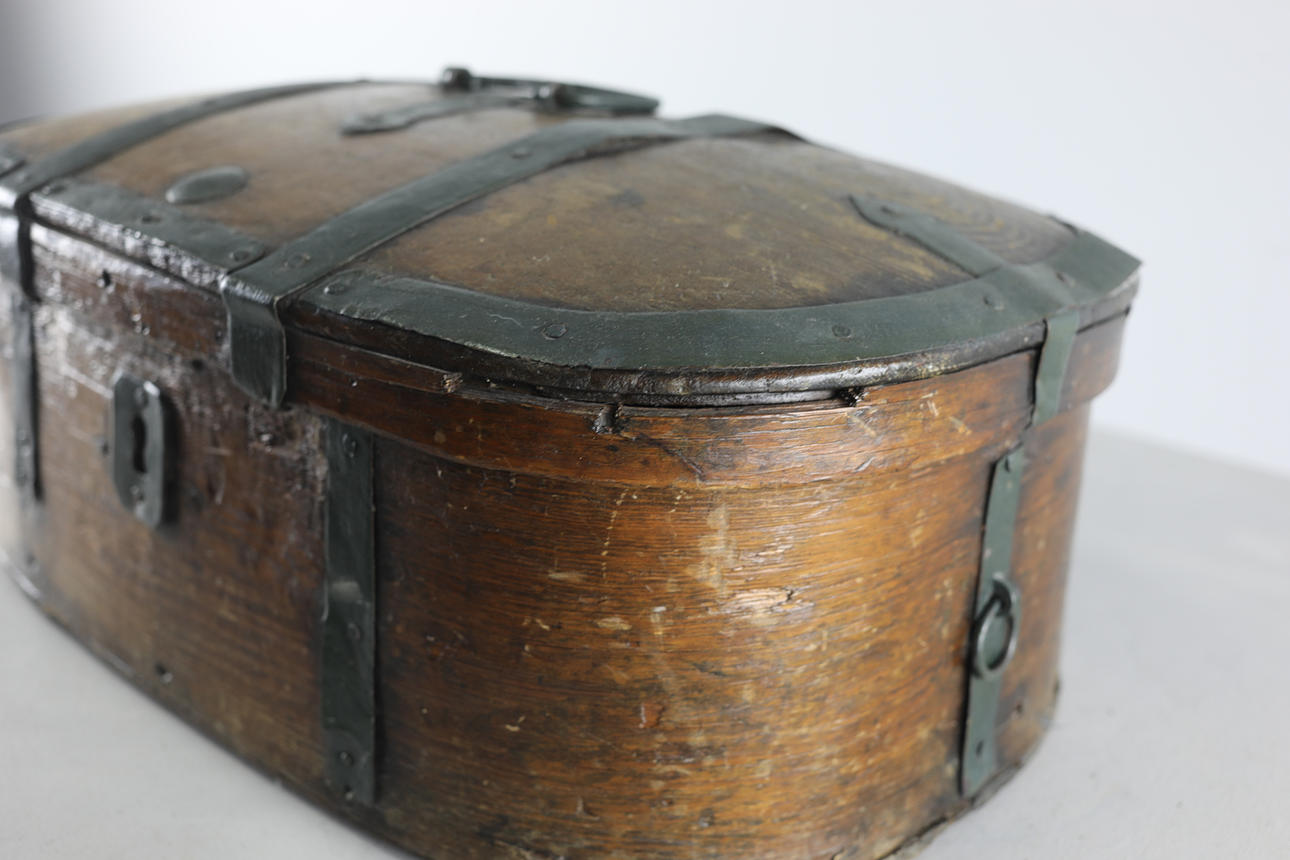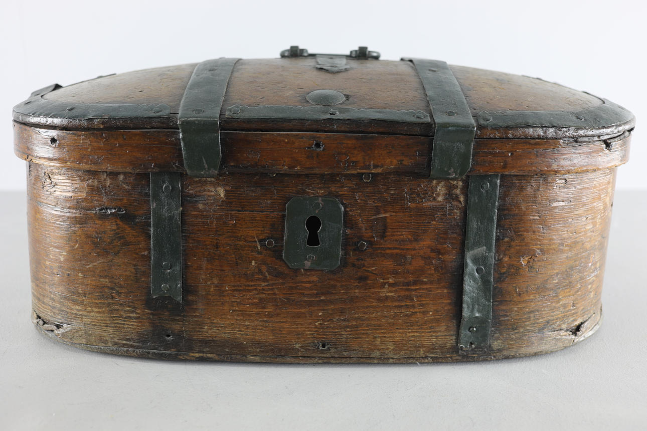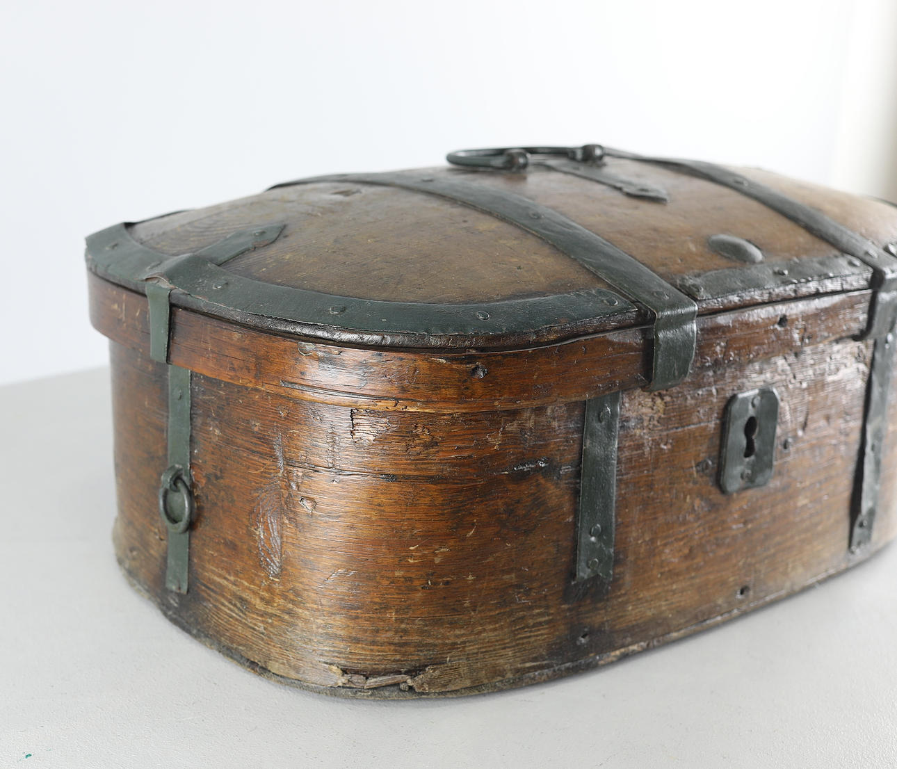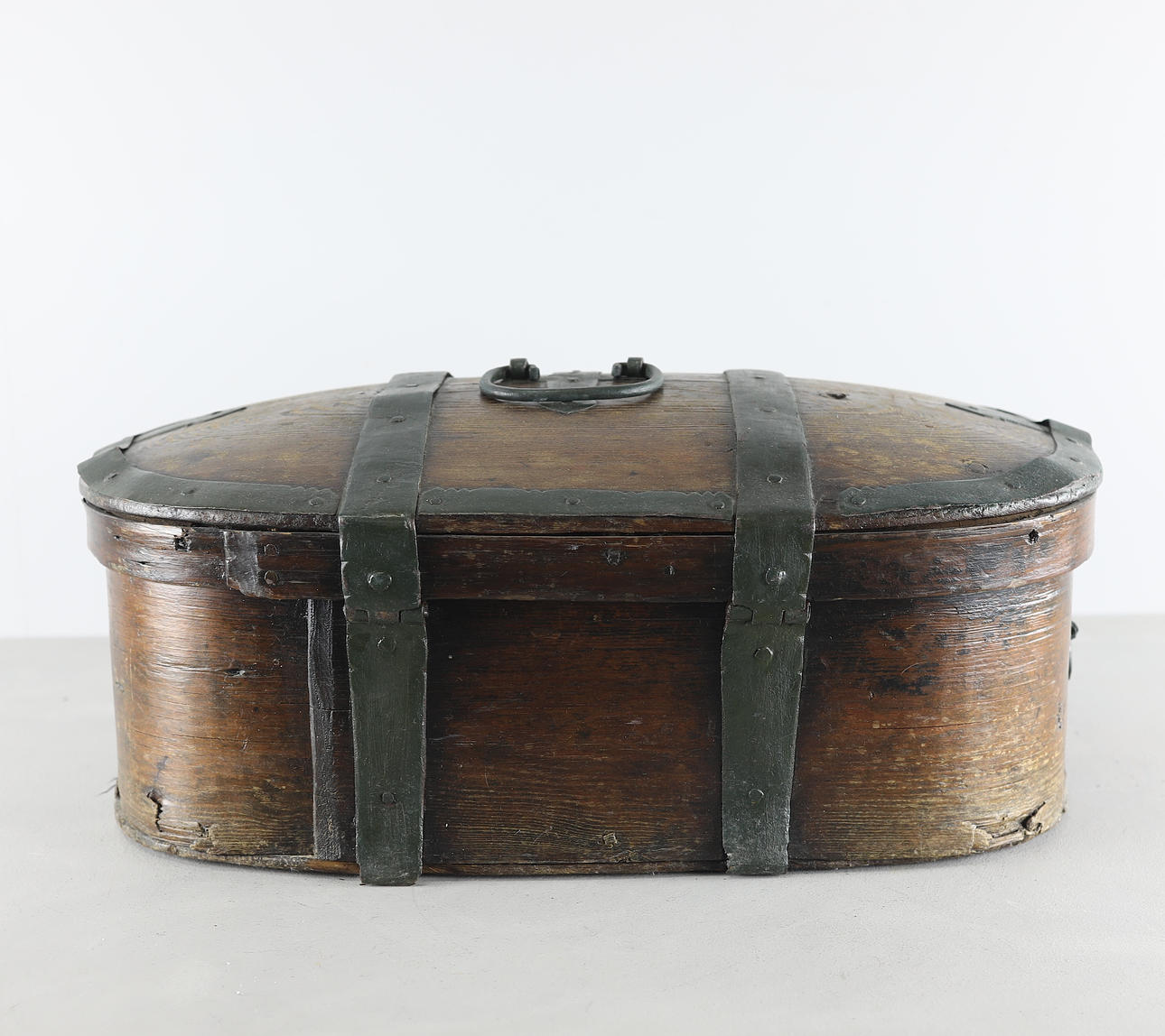 Av trä med järnbeslag, 57 x 37, höjd ca 22 cm.