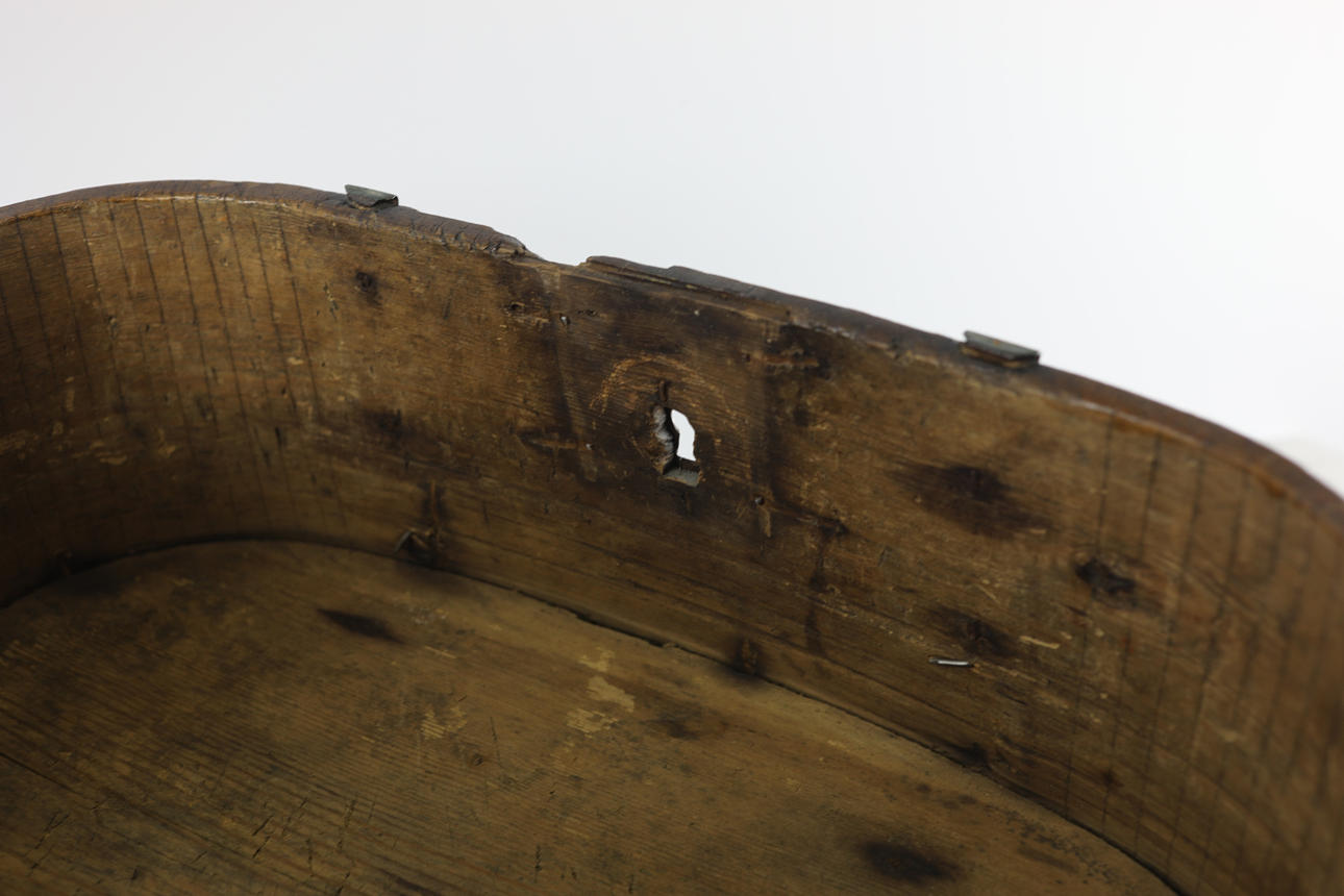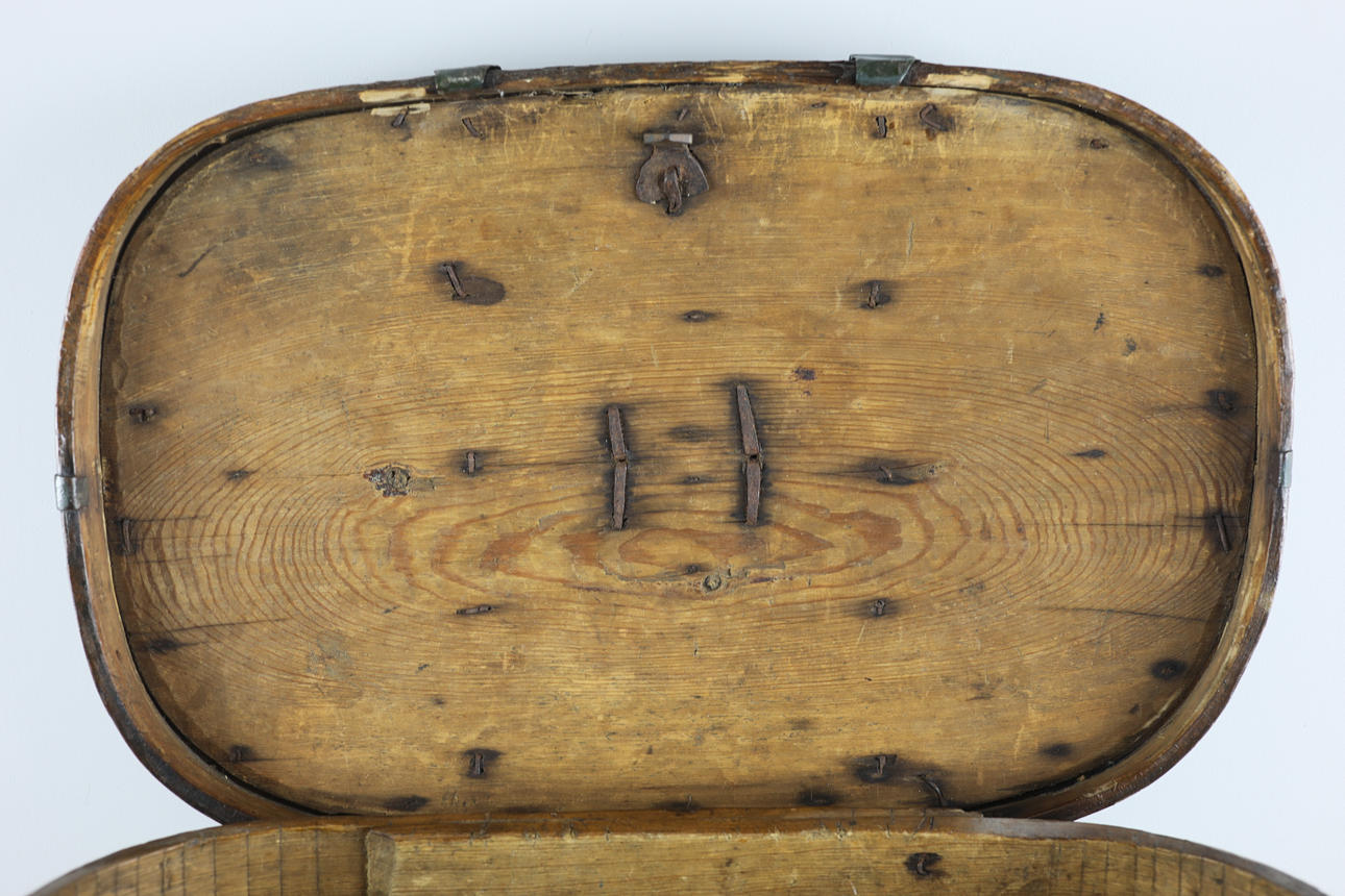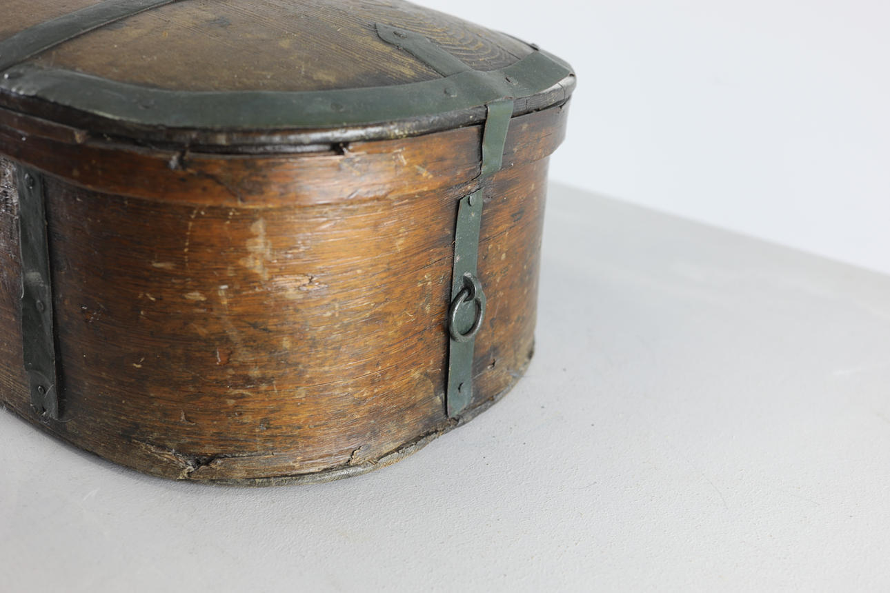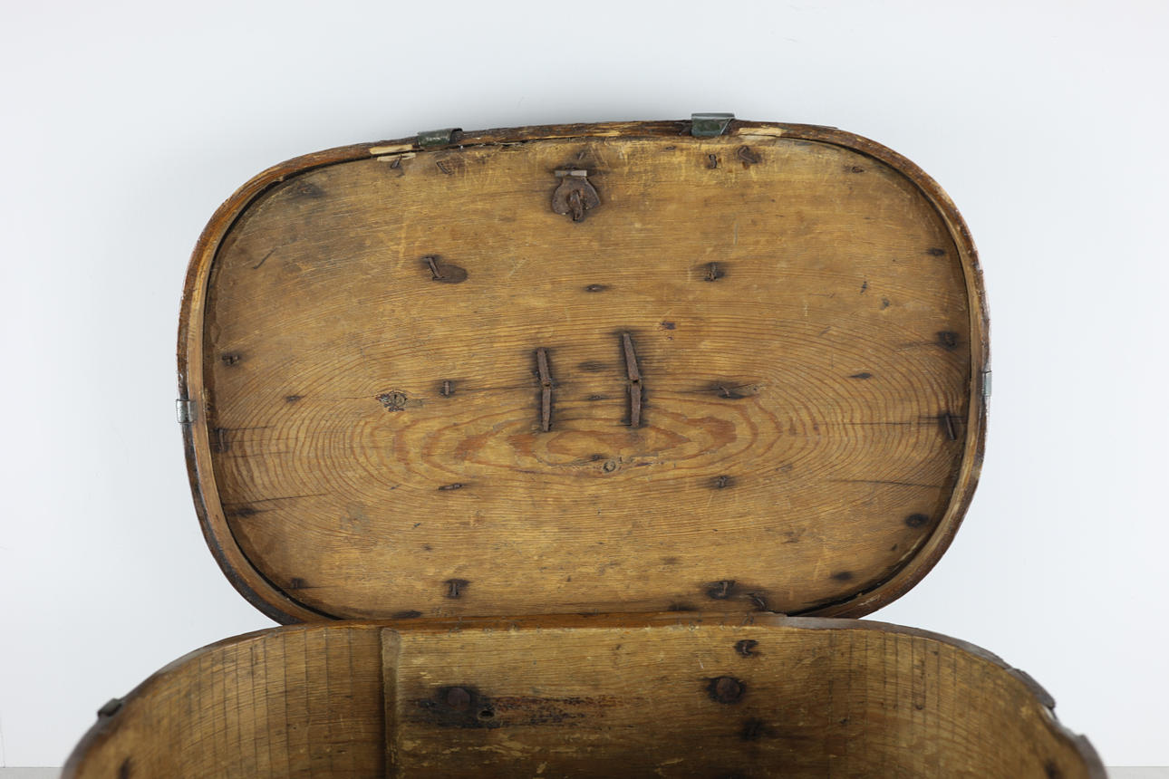 Av trä med järnbeslag, 57 x 37, höjd ca 22 cm.