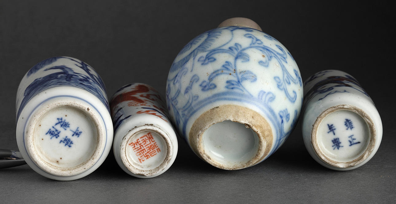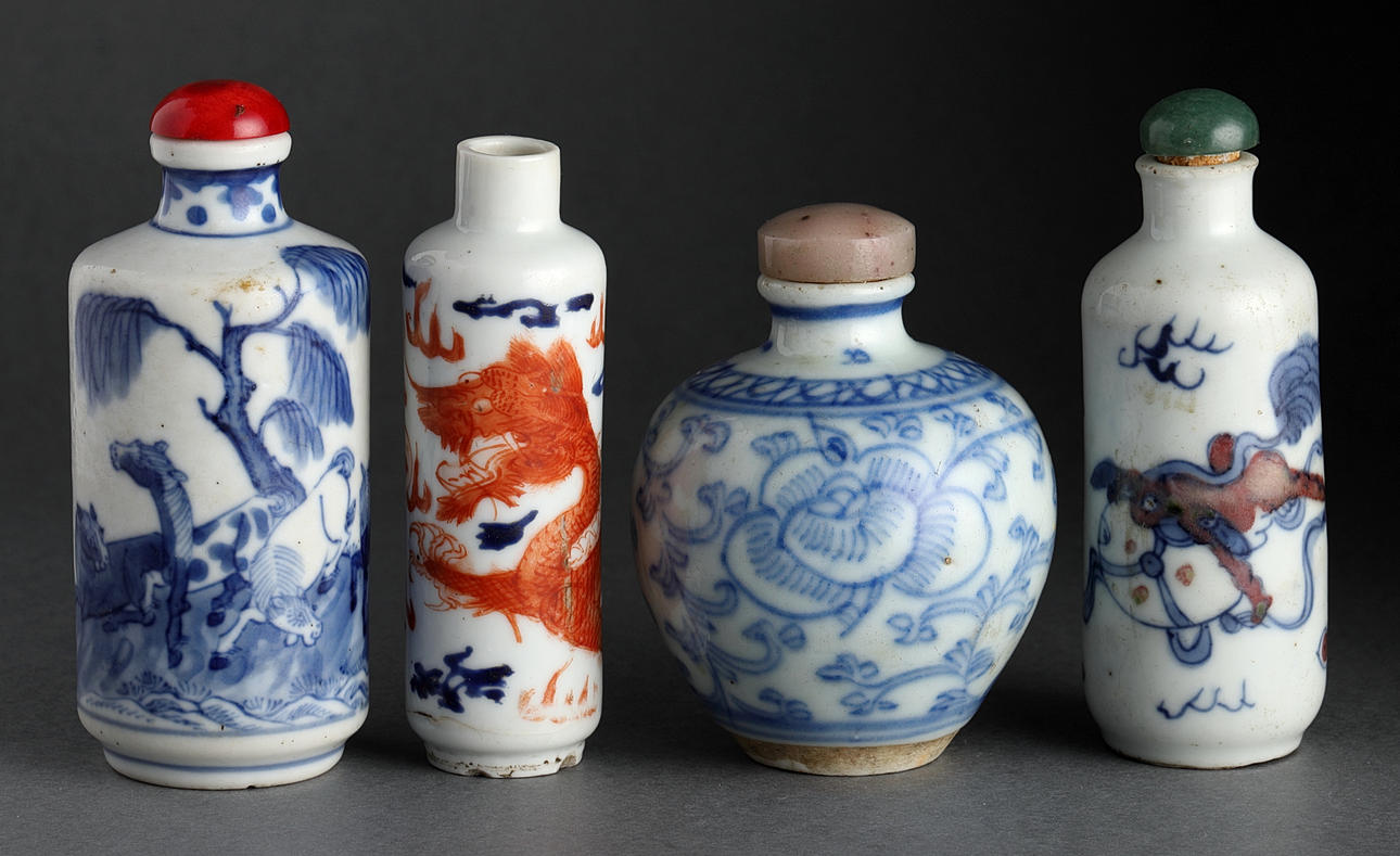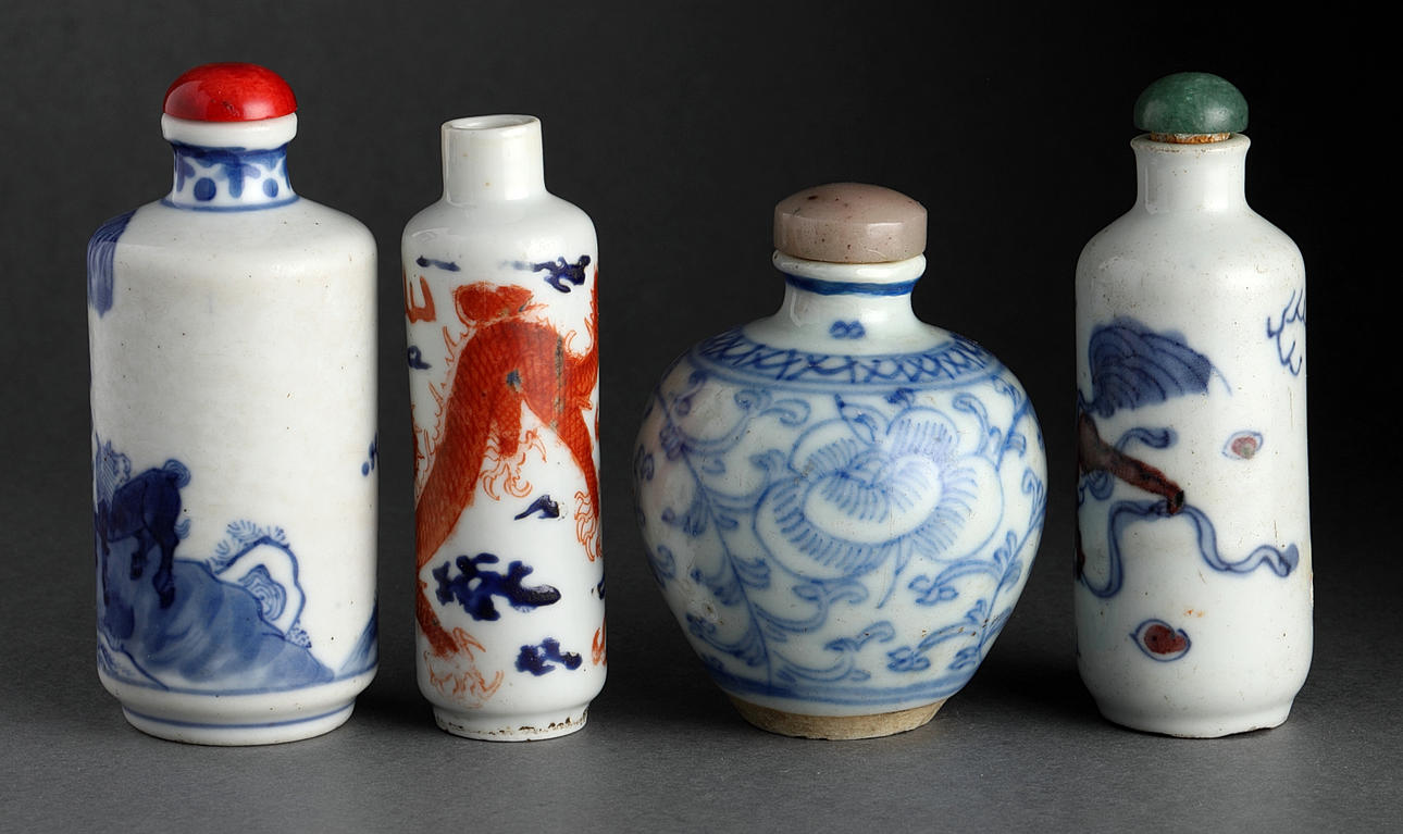 Snuff bottles, 4 pcs., porcelain, China, Qing, 19 century.