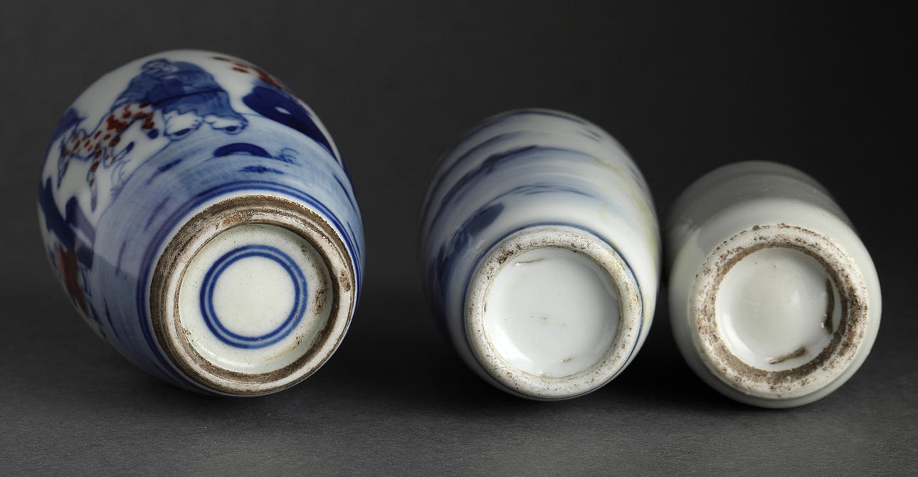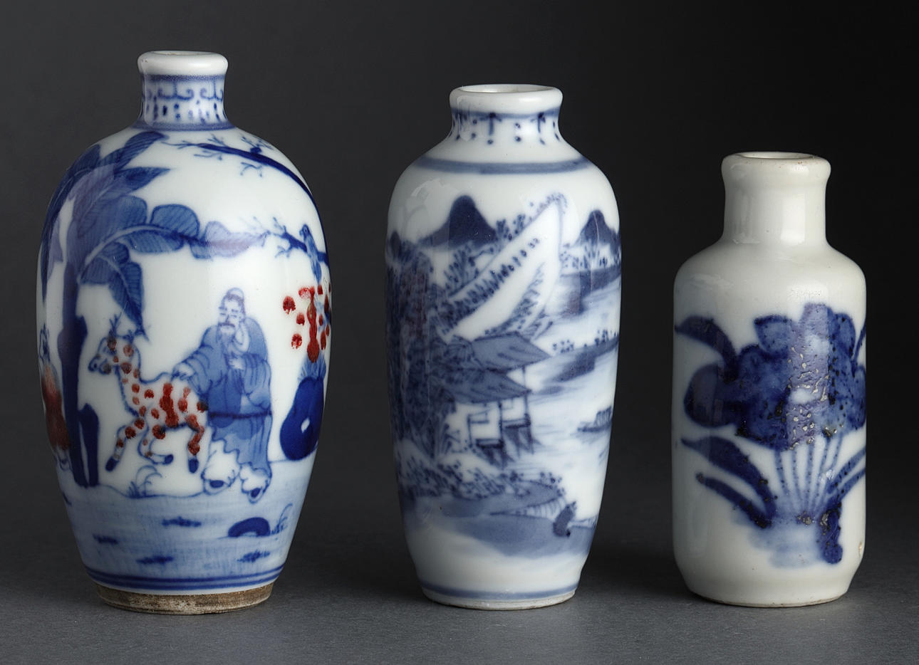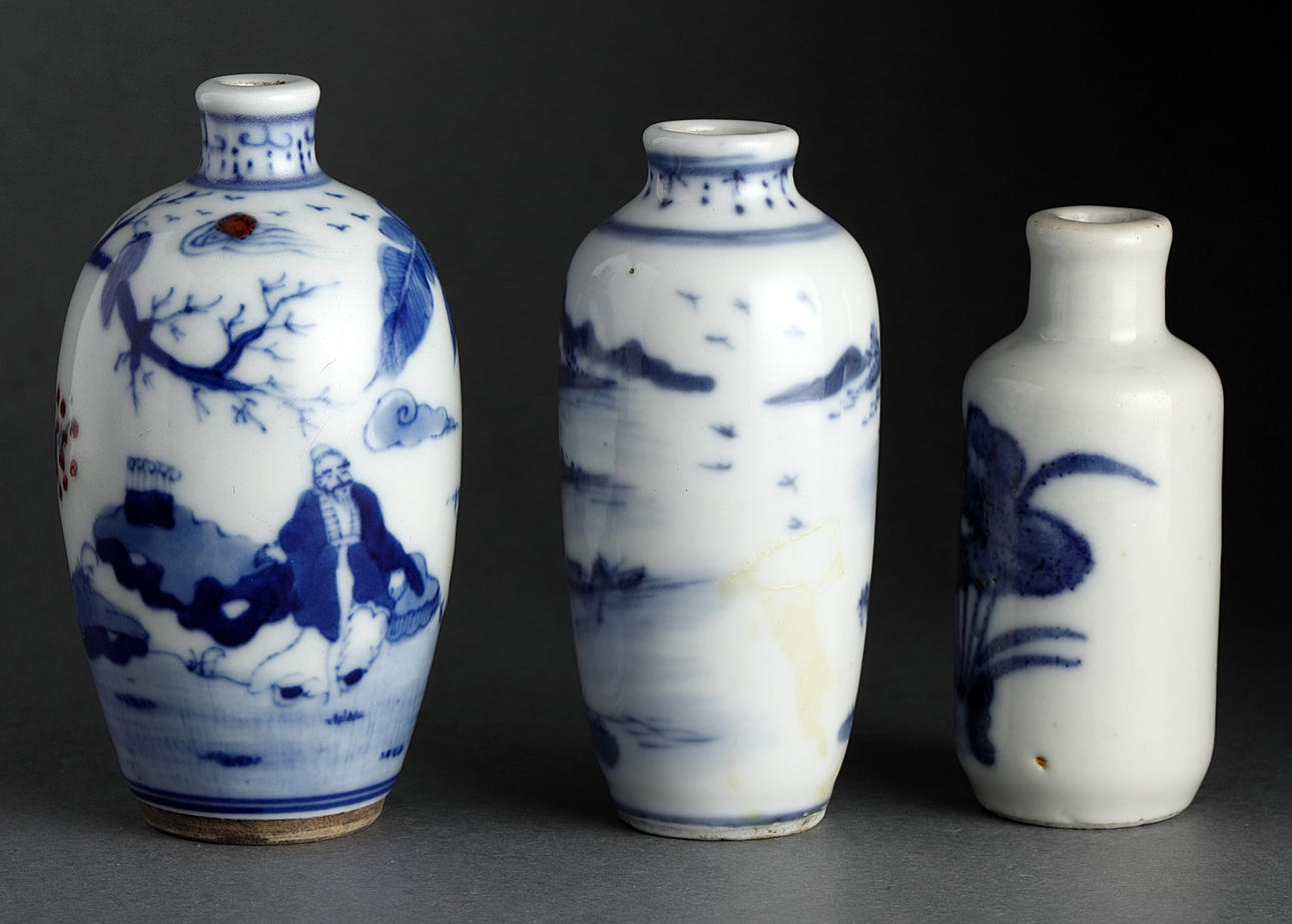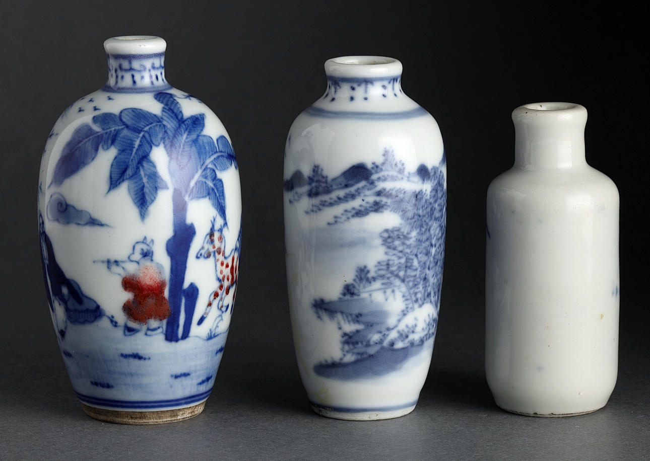 Snuff bottles, 5 pcs., porcelain, China, Qing, 20th century.