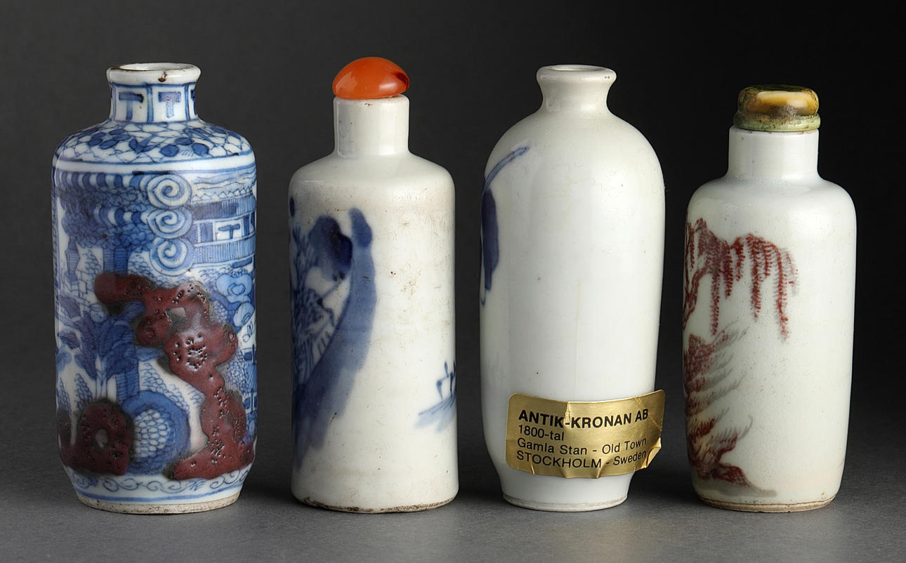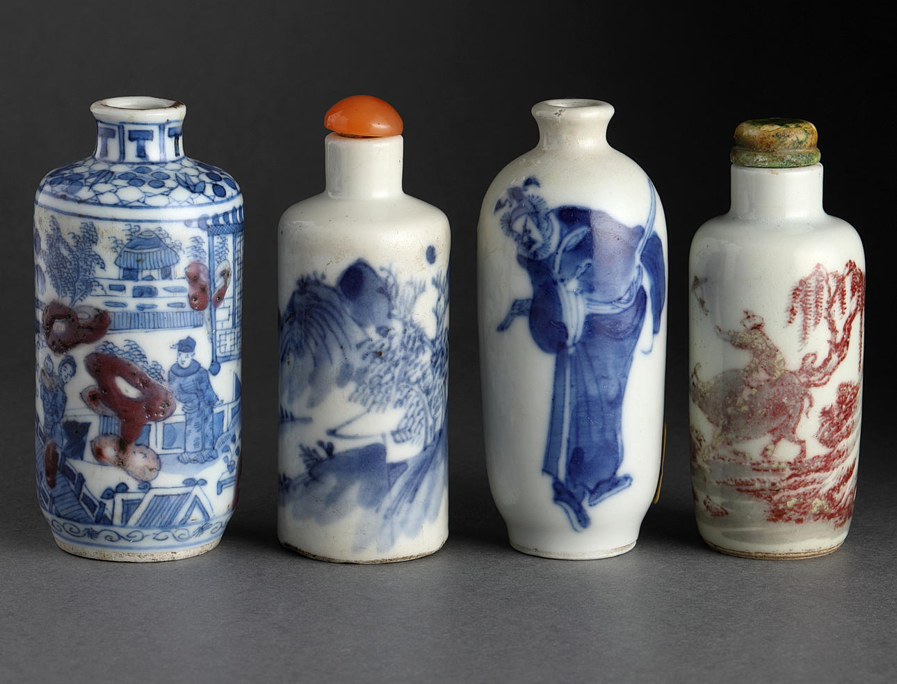 Snuff bottles, 4 pcs., porcelain, China, Qing, 19th century.