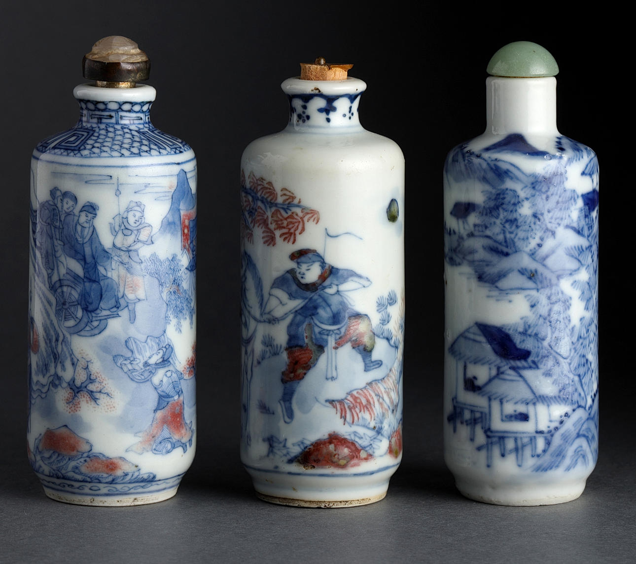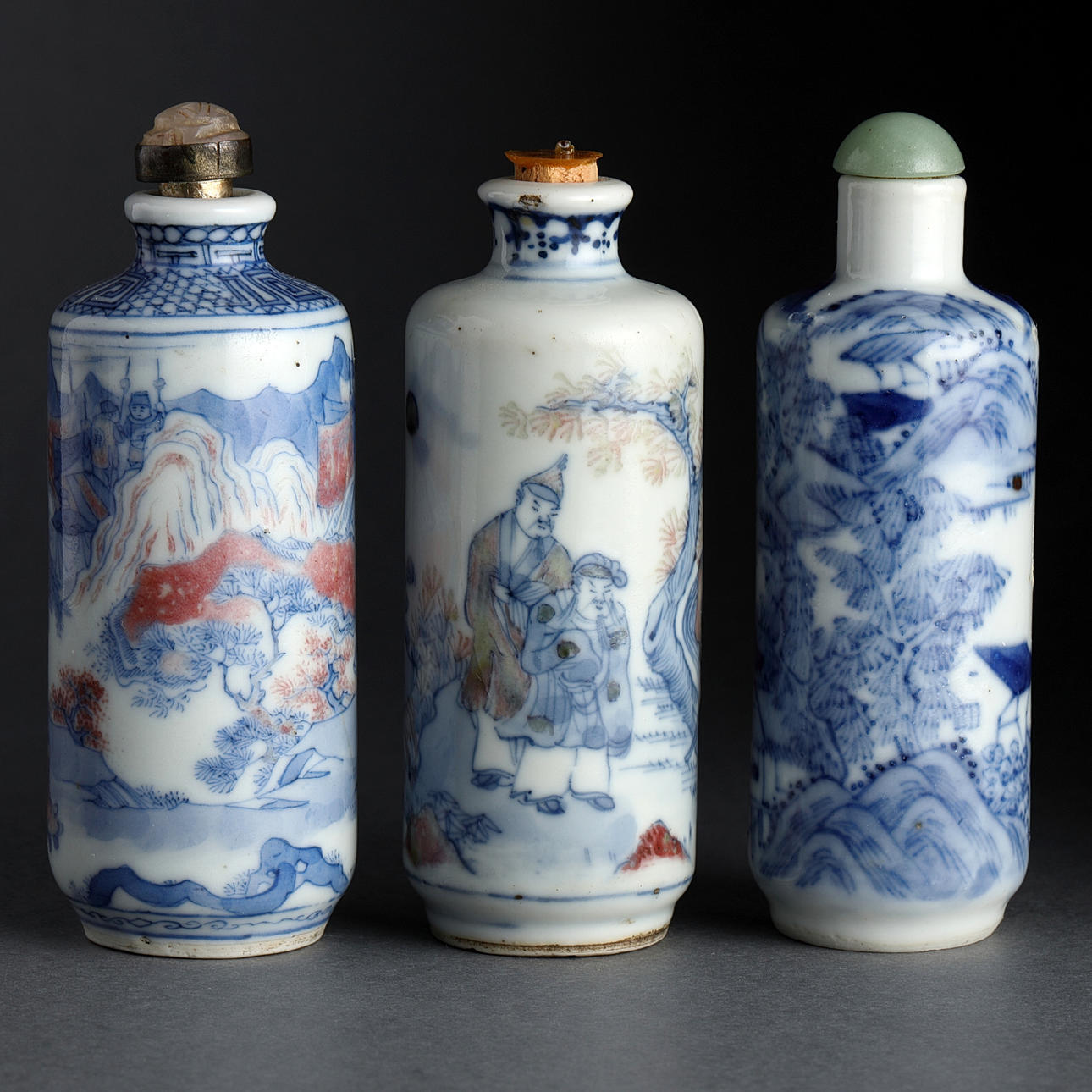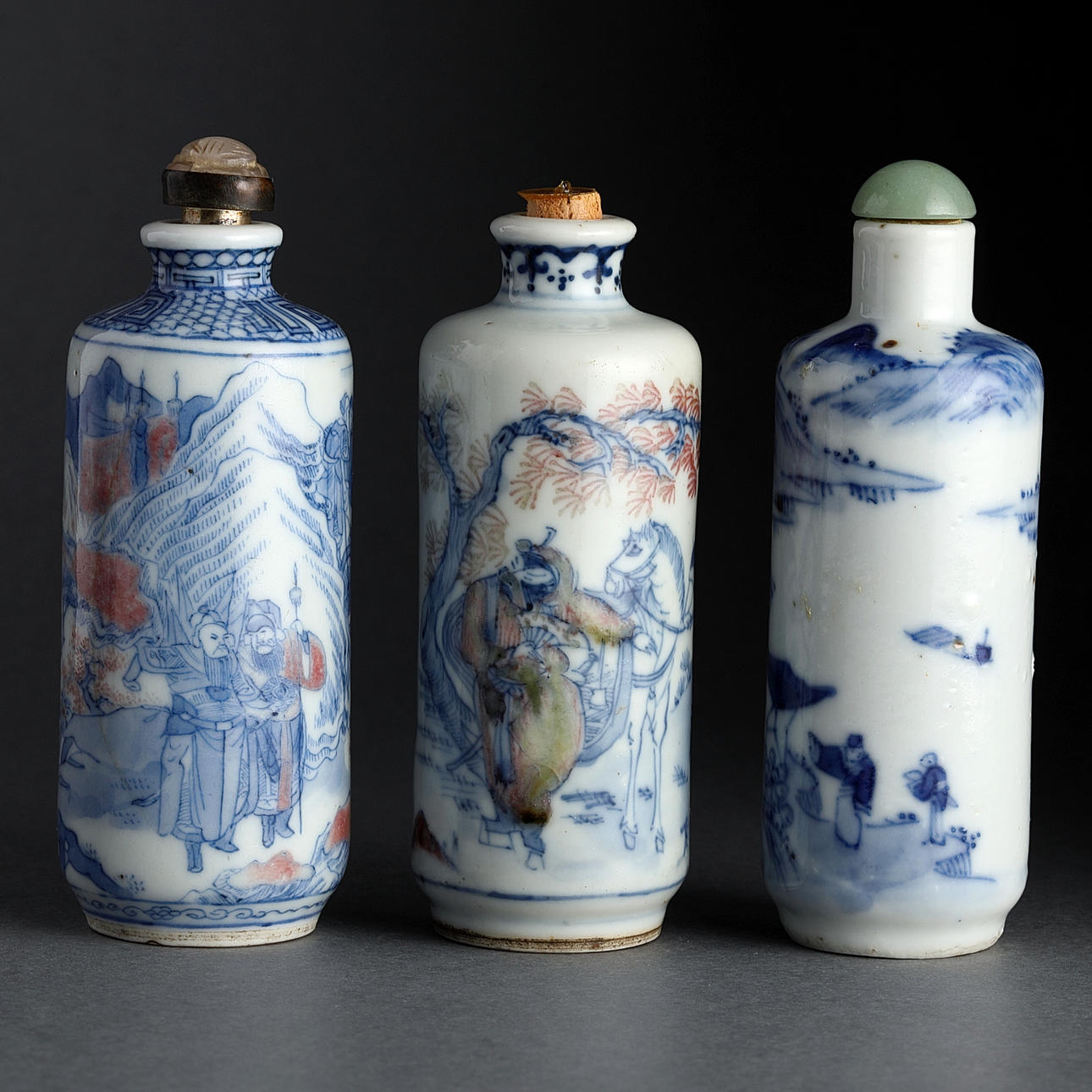 Snuff bottles, 5 pcs., porcelain, China, Qing, 19th century.