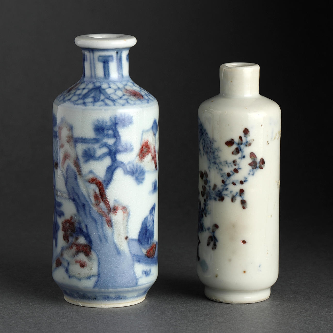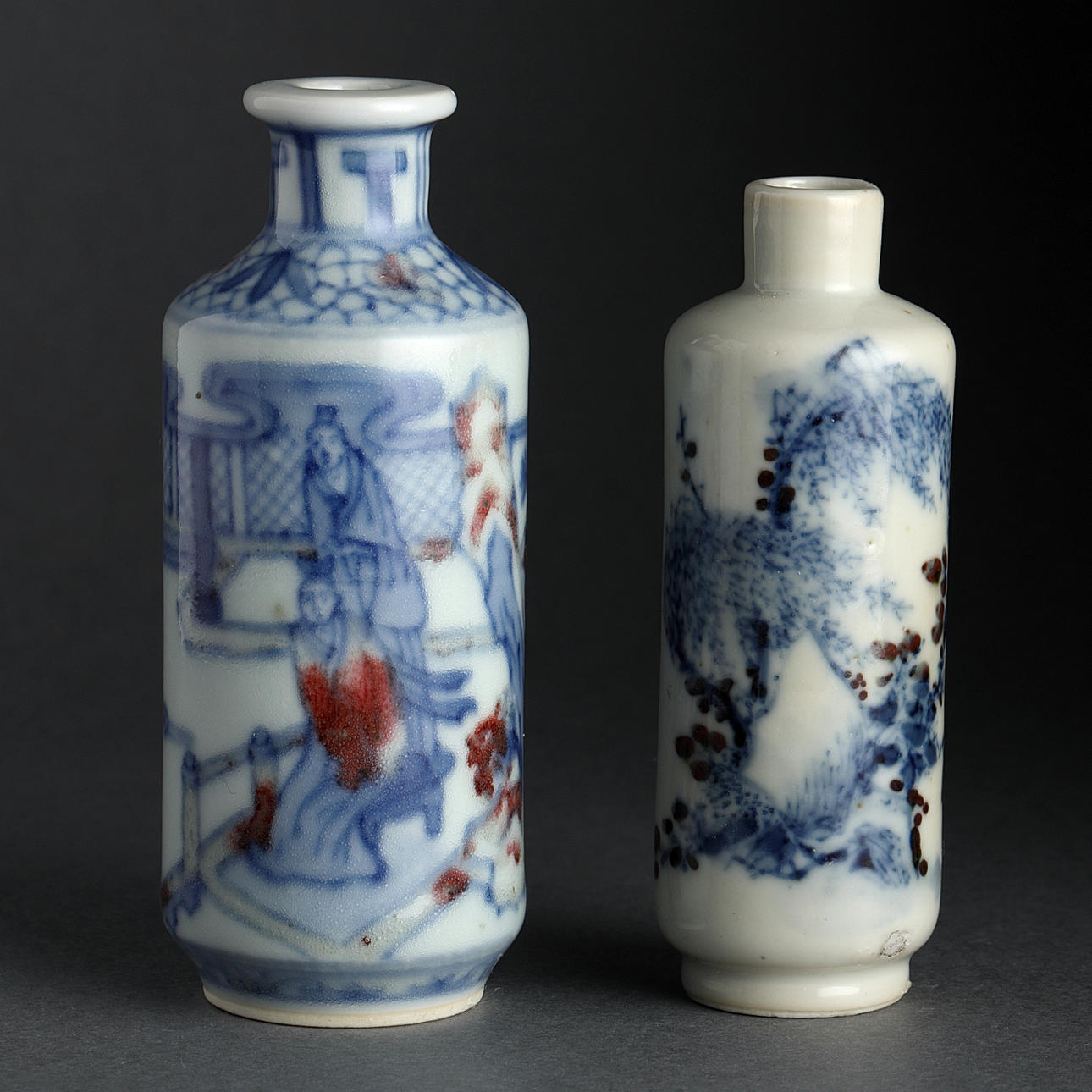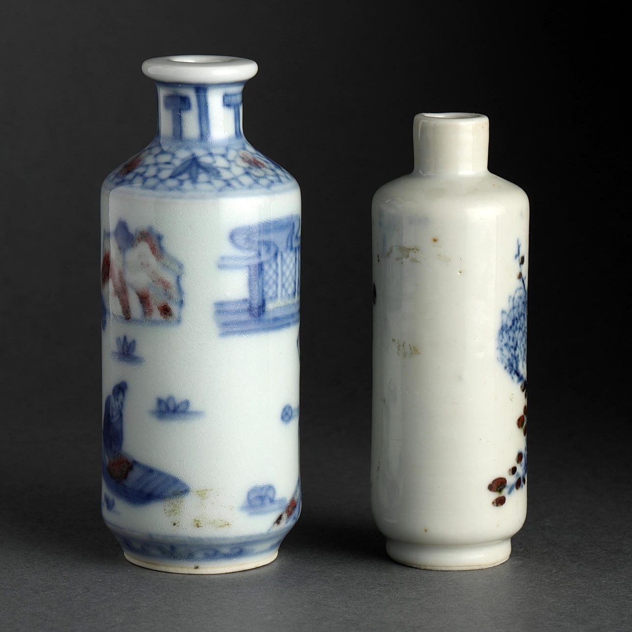Snuff bottles, 5 pcs., porcelain, China, Qing, 19th century.