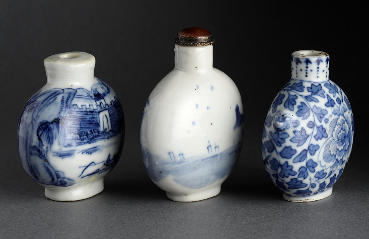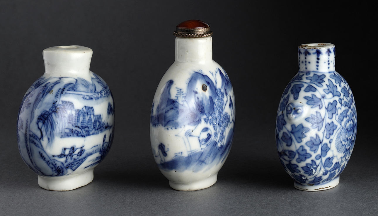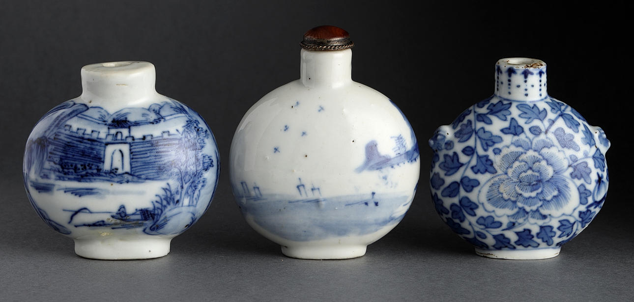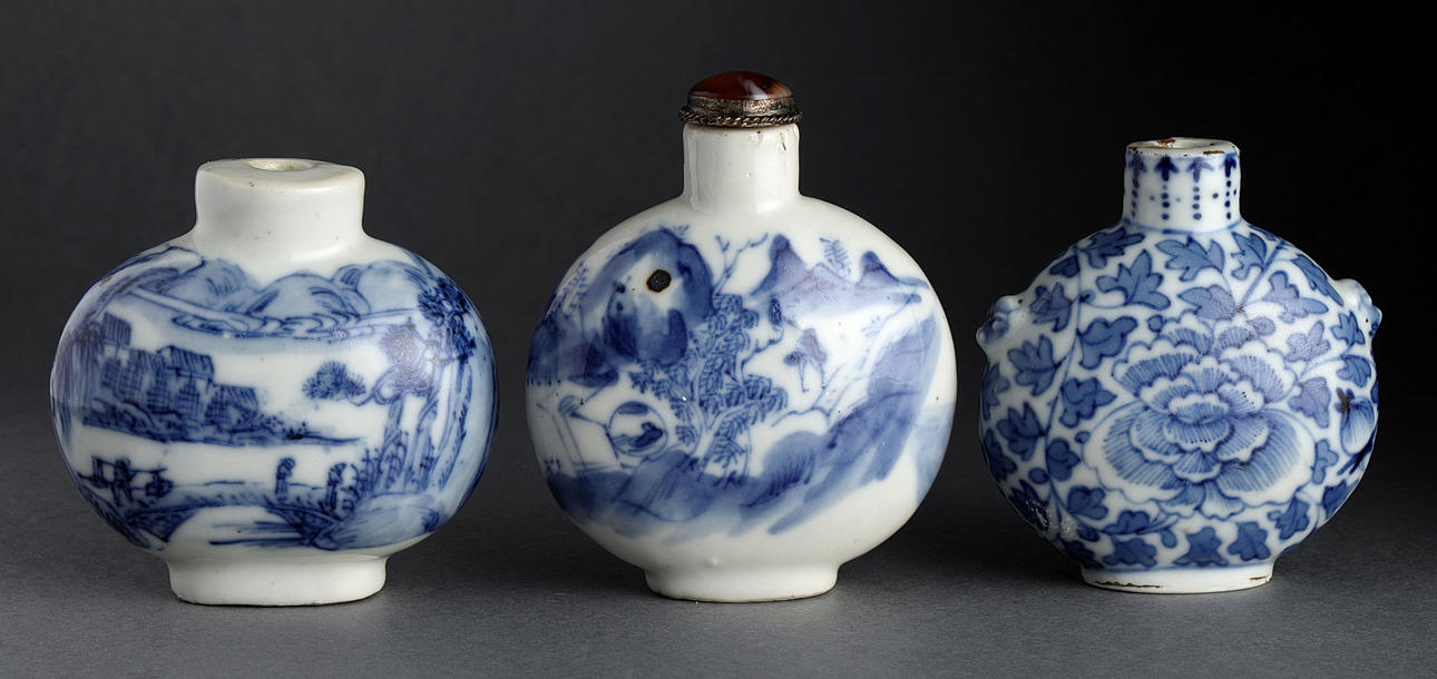 Snuff bottles, 3 pcs., porcelain, China, Qing, 19/20th century.