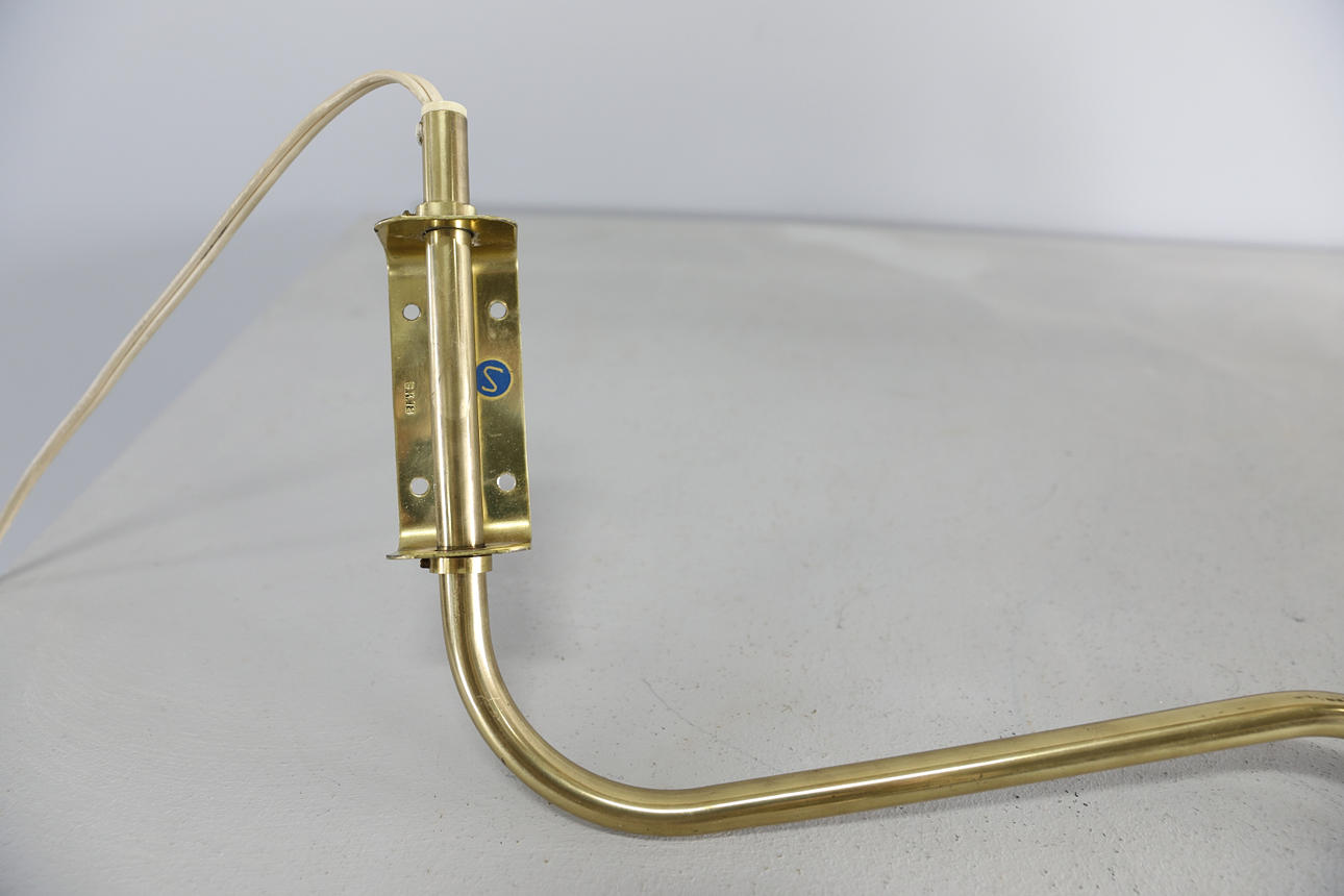 Stomme i mässing, ställbar skärm. Djup ca 68 cm.