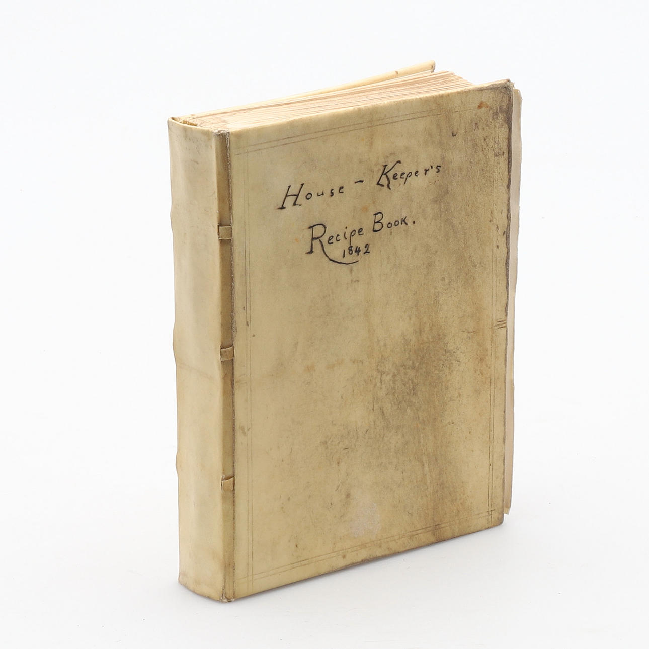 Vellum bunden och med skriftlig titel på framsidan: