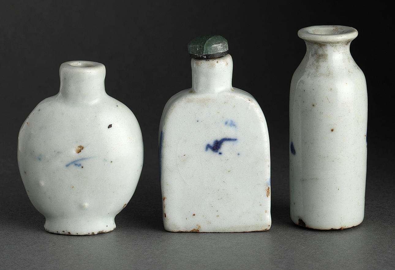 Snuff bottles, 5 pcs., porcelain, China, Qing, 20th century.