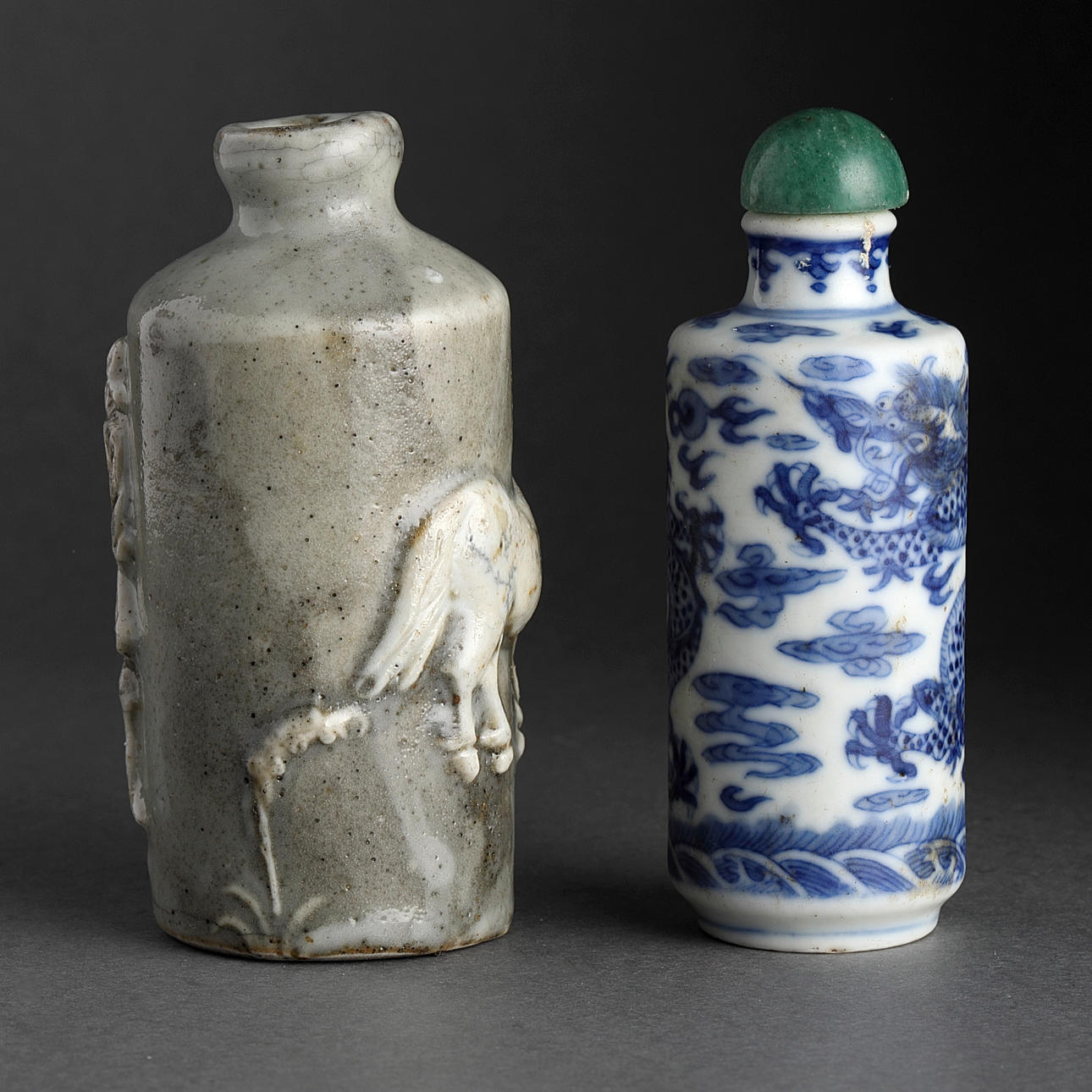 Snuff bottles, 2 pcs., porcelain, China, Qing, 19th century.