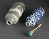 En saknar propp, en med nagg, one missing stopper, one with notch.
