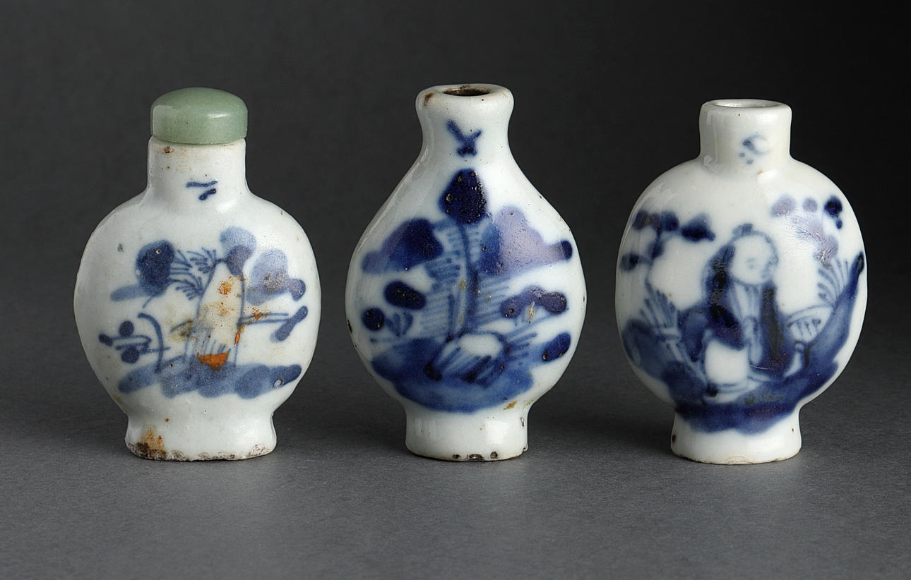 Snuff bottles, 5 pcs., porcelain, China, Qing, 20th century.