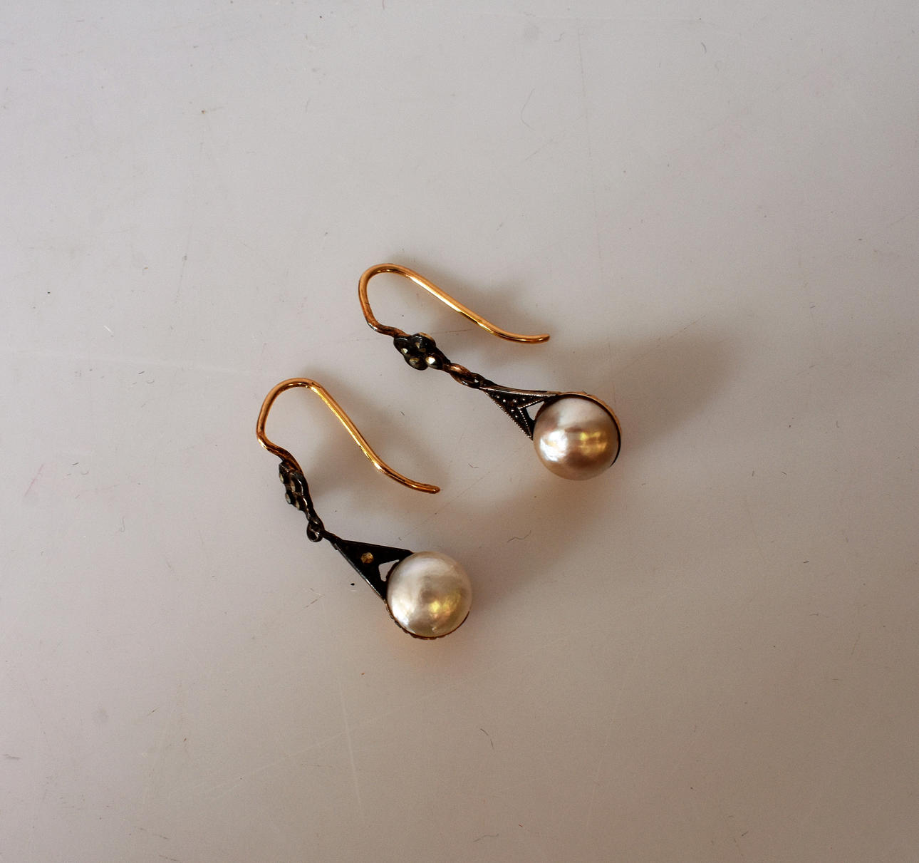 1641046. ÖRHÄNGE pärlor, förgyllt silver.